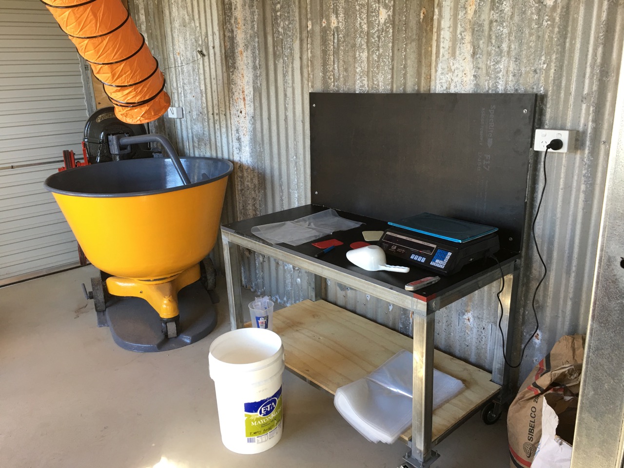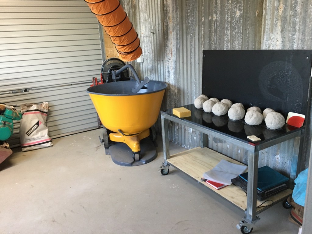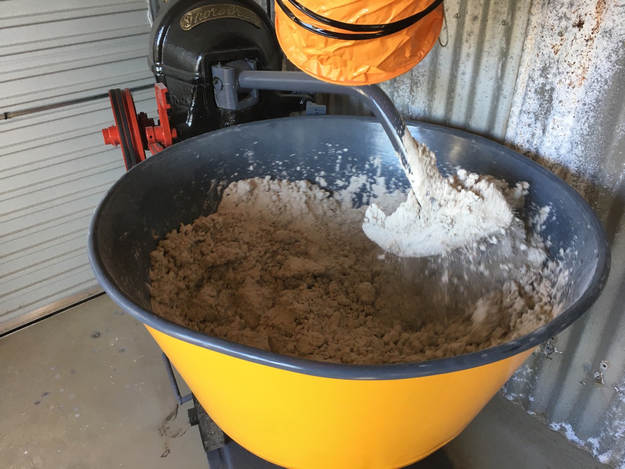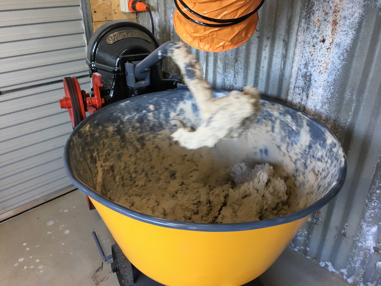 Today we made our first batch of clay in the new pottery clay making room in the new shed.