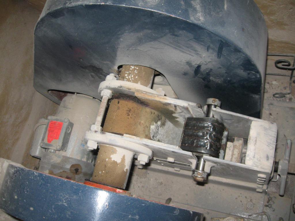 The grit from this small Van Gelder crusher is then reduced further in the ‘Bico’ disc disintegrator mill, down to something close to a sand-like size. Interestingly, ‘Bico’ crushers are still available in the USA. I googled them, they are still in business and the identical machine is still for sale on their web site in a slightly newer version. I bought mine many years ago 3rd or 4th hand, no history and unmounted. It obviously hadn’t been used for a long time and was seized up, but I managed to get it moving again after a bit of work.