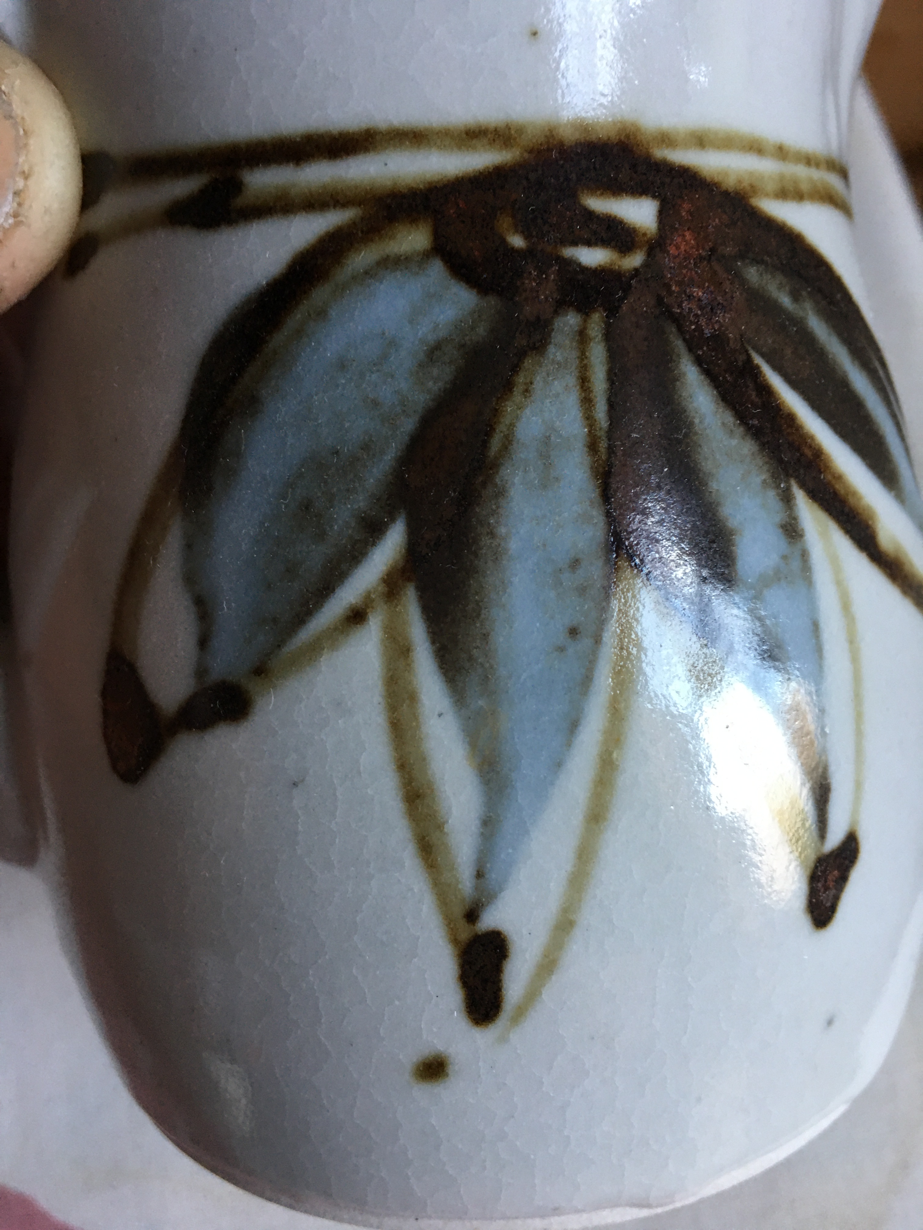 I tried this recipe when I was a student at Art School, but didn’t like it. A bit too much like fountain pen ink. My local red clay and cobalt recipe is simplier and it’s mine. It also has that lovely blue/black cobalt and iron break between thick and thin.