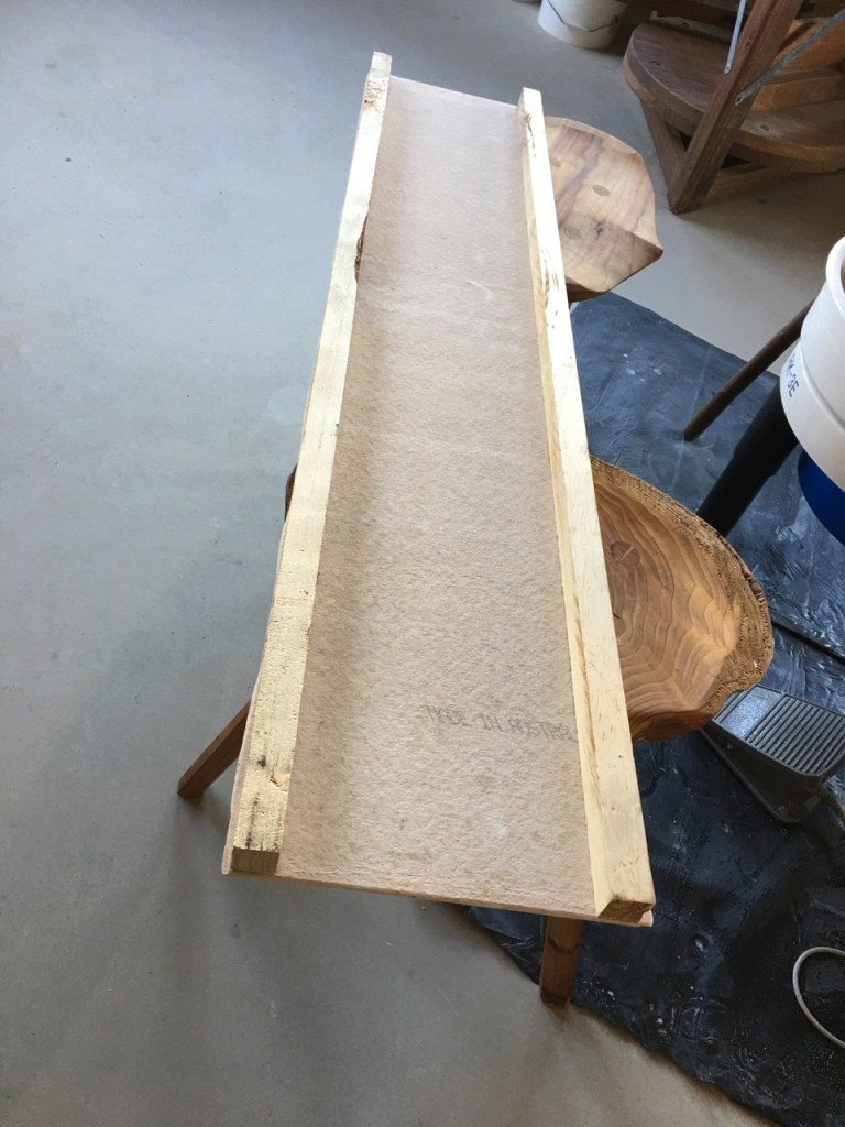While the ball mill runs, I spend a bit of time making some new fibre cement pot boards. I use our own sawn and milled pine slats to reinforce and support the fibre cement sheet boards. Some of the advantages of the FC pot boards is that they are cheap, very flat, quite absorbent and light weight.