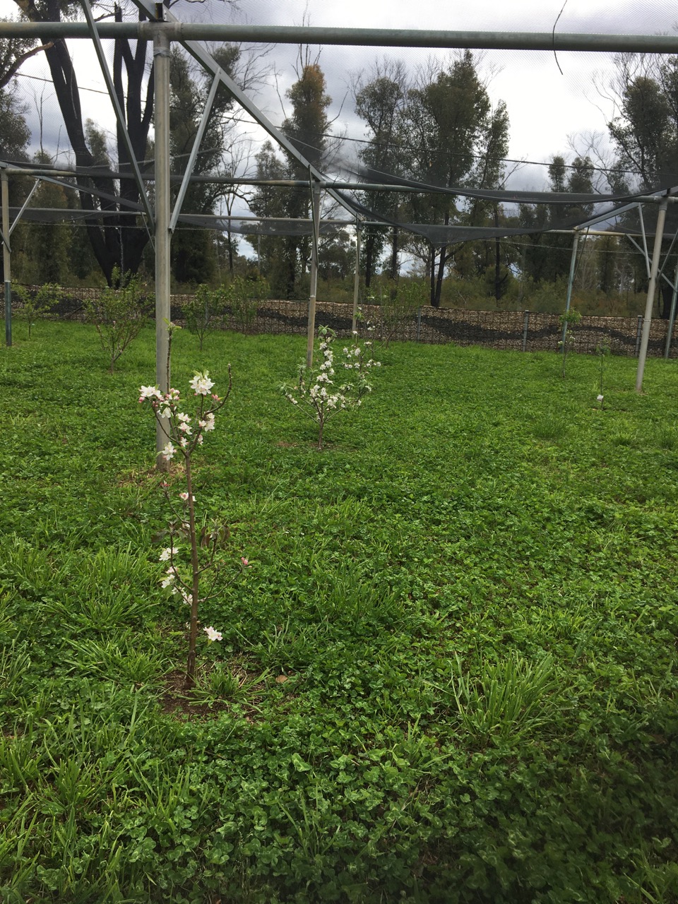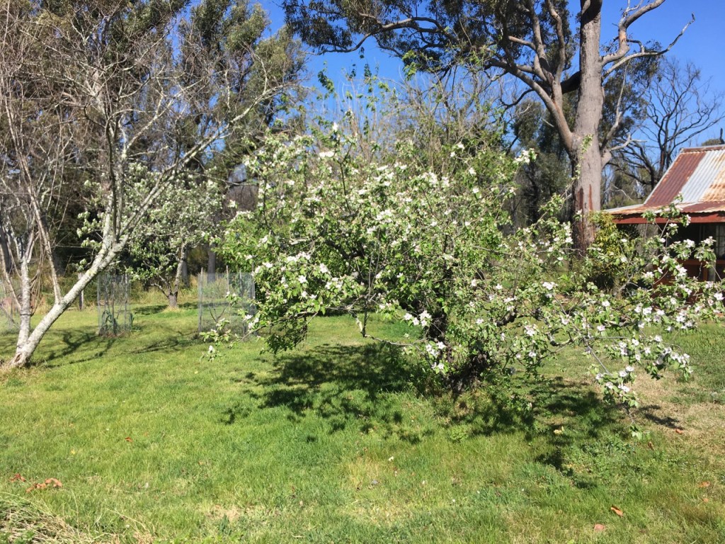 Even the young little apple trees, only I planted last year in the new orchard that we built after the fire, These are also flowering.