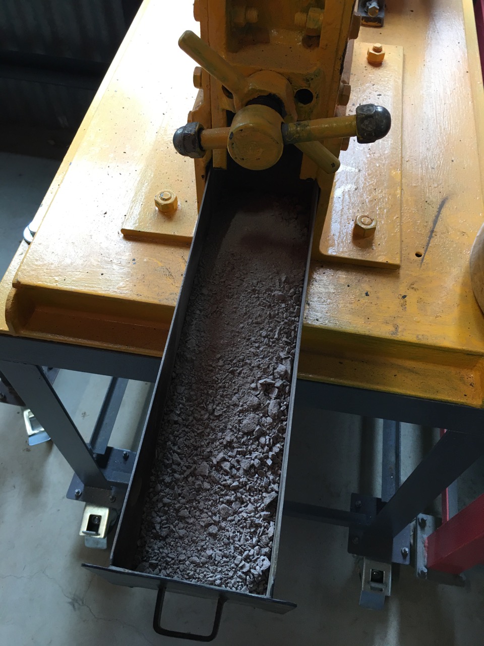 So it’s working again now beautifully. Producing a grit that is suitable to go into the disc mill.