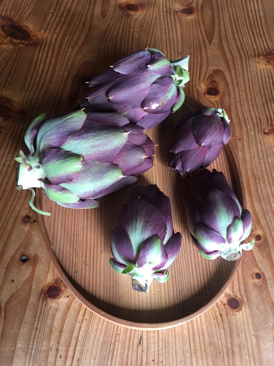 There are two beds, right at the bottom of the garden. They look great all cleaned out. I can’t wait for the new spears to come through. The artichokes behind them are just coming into head. The earliest variety is the early Italian purple. We ate them for lunch.
