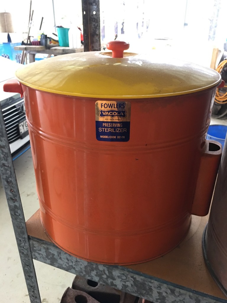 We were recently given a larger size model from some lovely friends that have stopped preserving. It is a more recent model and has a plastic lid – modern cost cutting in manufacturing?