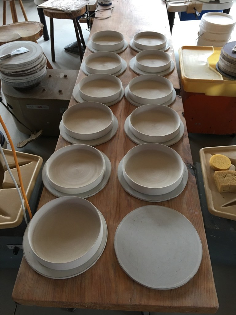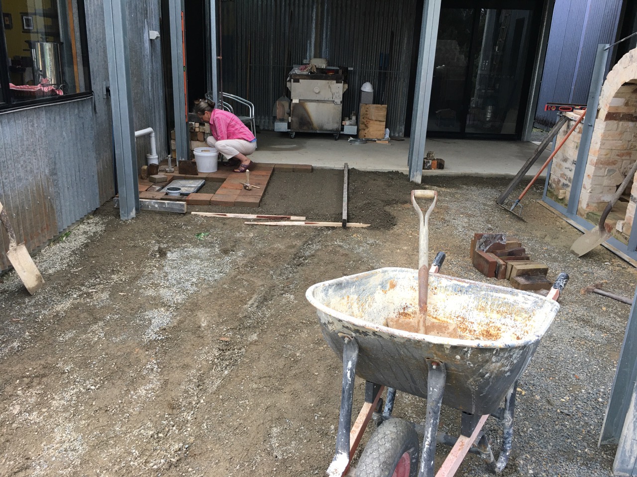 The rest of the week was spent turning porcelain bowls in the pottery and continuing the work of paving along the back of the pottery.