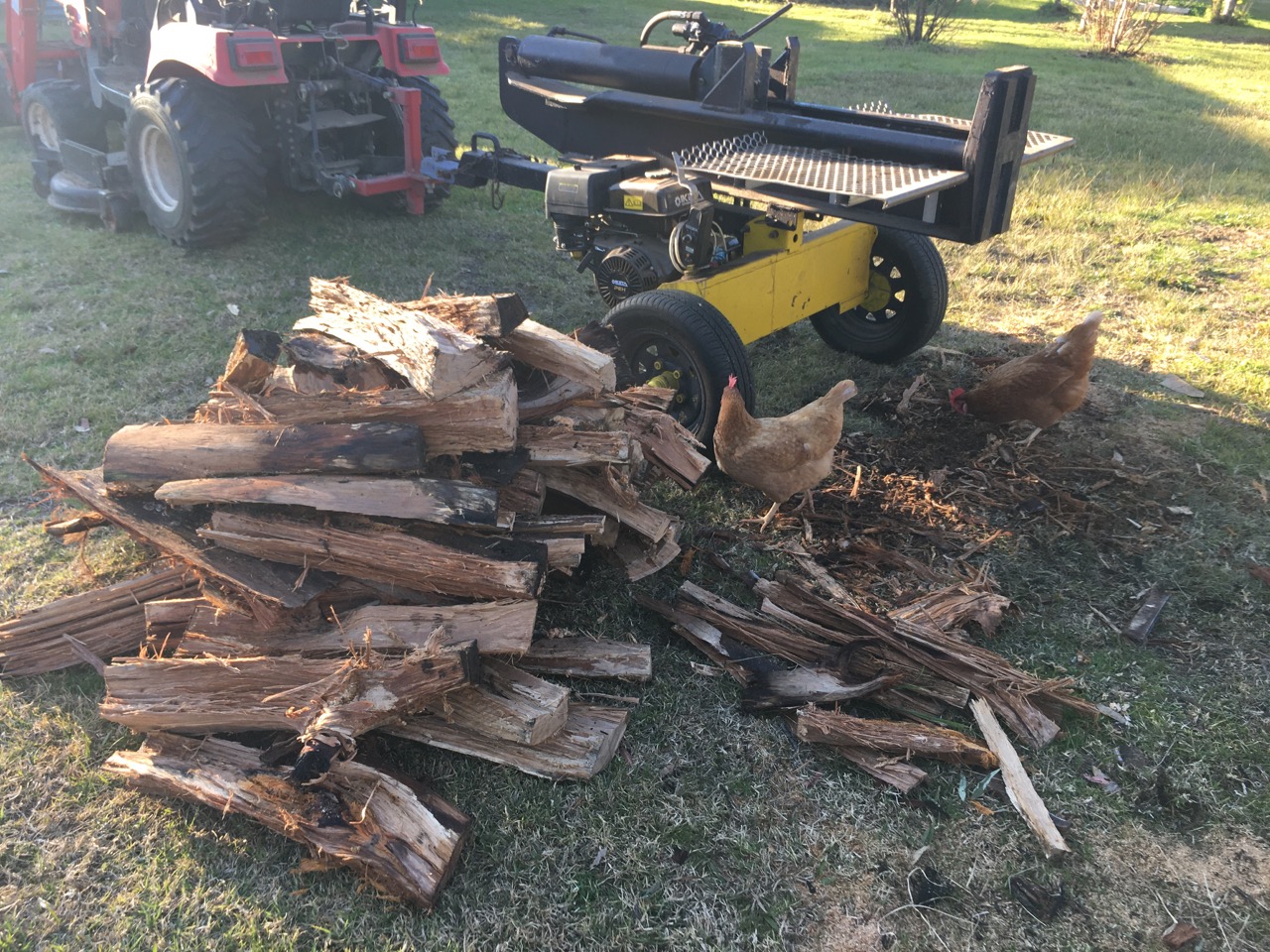 Since the firing, I have been out splitting more wood for the next wood firing, helped by the chickens of course. They even followed me into the workshop where I had 2 girls in a man shed!
