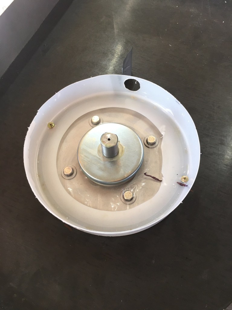 I cut the bottom out of a plastic bucket to make the circular wall that stops all the turnings and clay slurry ending up on the top bearing. I ‘TEK’ screwed this to the wooden base and used silicone rubber to seal all the edges and make the tray water proof.