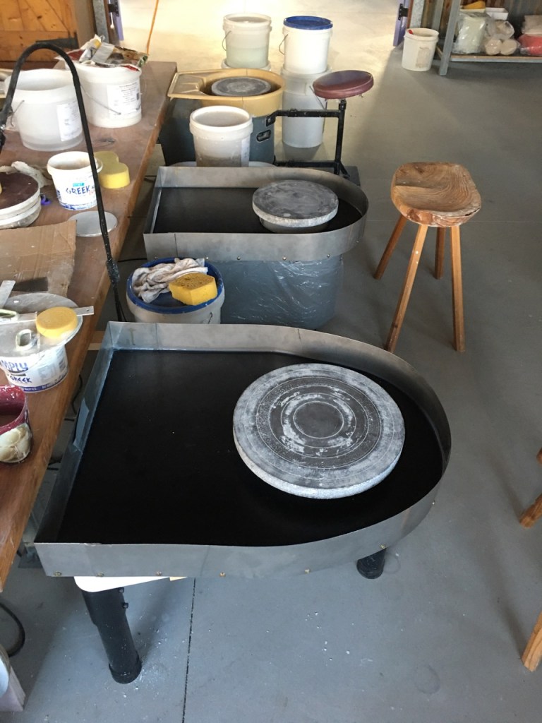 In the old pottery, I installed the RK-2 and RK-2 super shimpos in wooden enclosures, so all the turnings went straight onto the floor around the wheel, as is the Japanese accepted practice. However, in this new pottery studio, all the wheels are situated in a row either side of a central bench. This isn’t so convenient for allowing the turning to spill directly onto the floor.