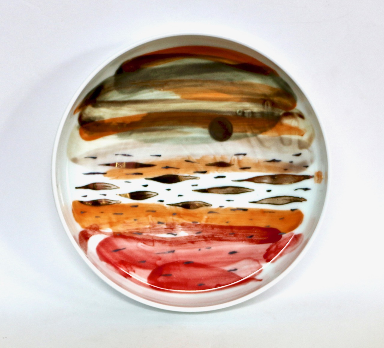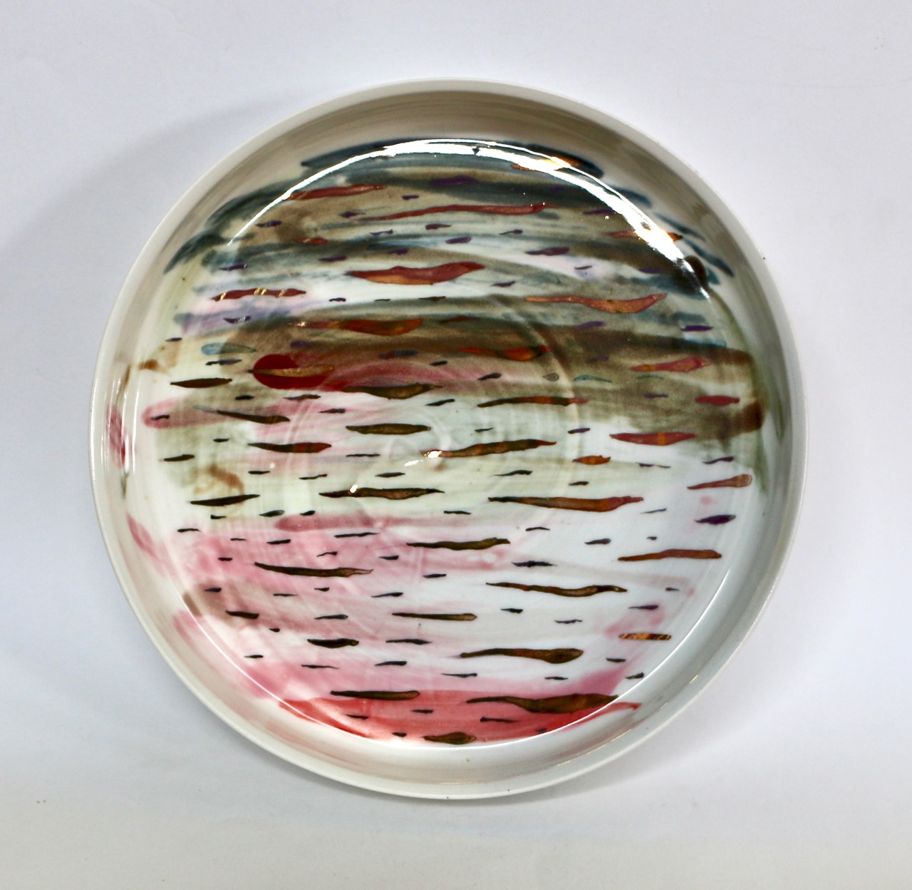 Sericite porcelain dishes with pigments and on-glaze gold, platinum and copper lustres