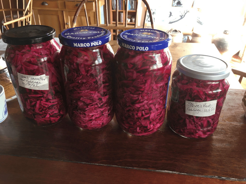 I ended up picking a second smaller cabbage and making up enough to fill 4 jars.