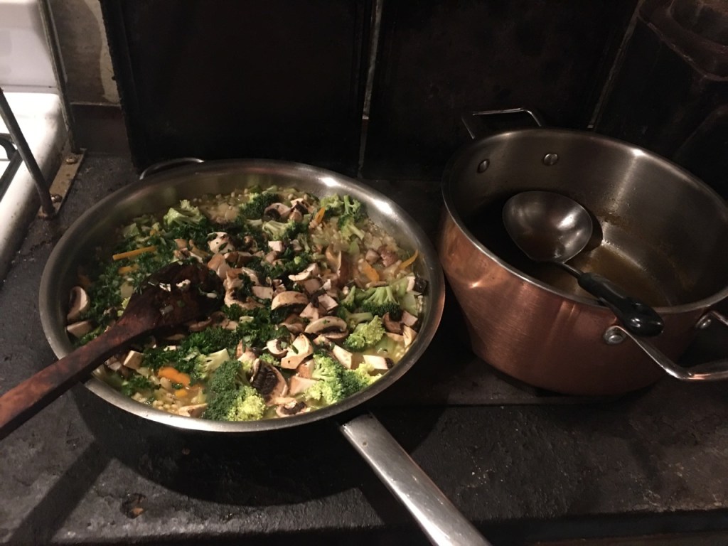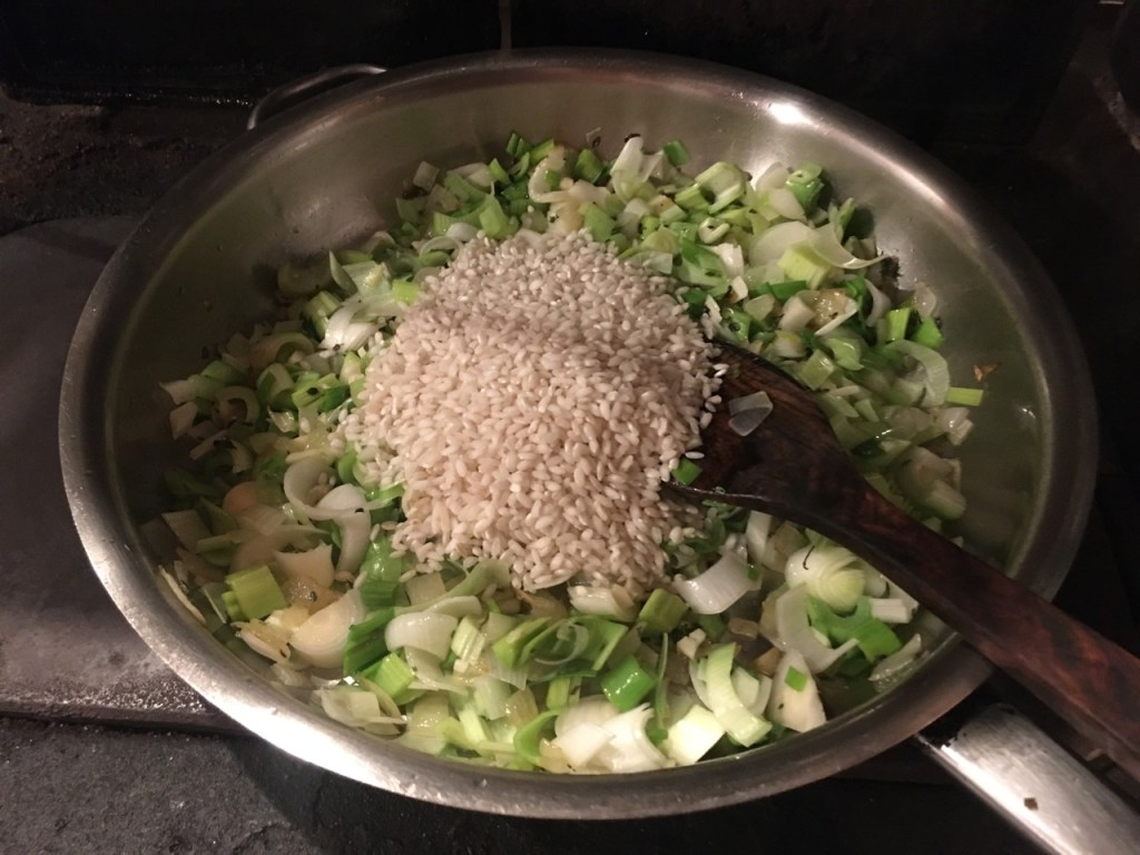 We have loads of leeks at the moment, so made a risotto style veggie meal with a load of leeks and a garden vegetable mirepoix stock.
