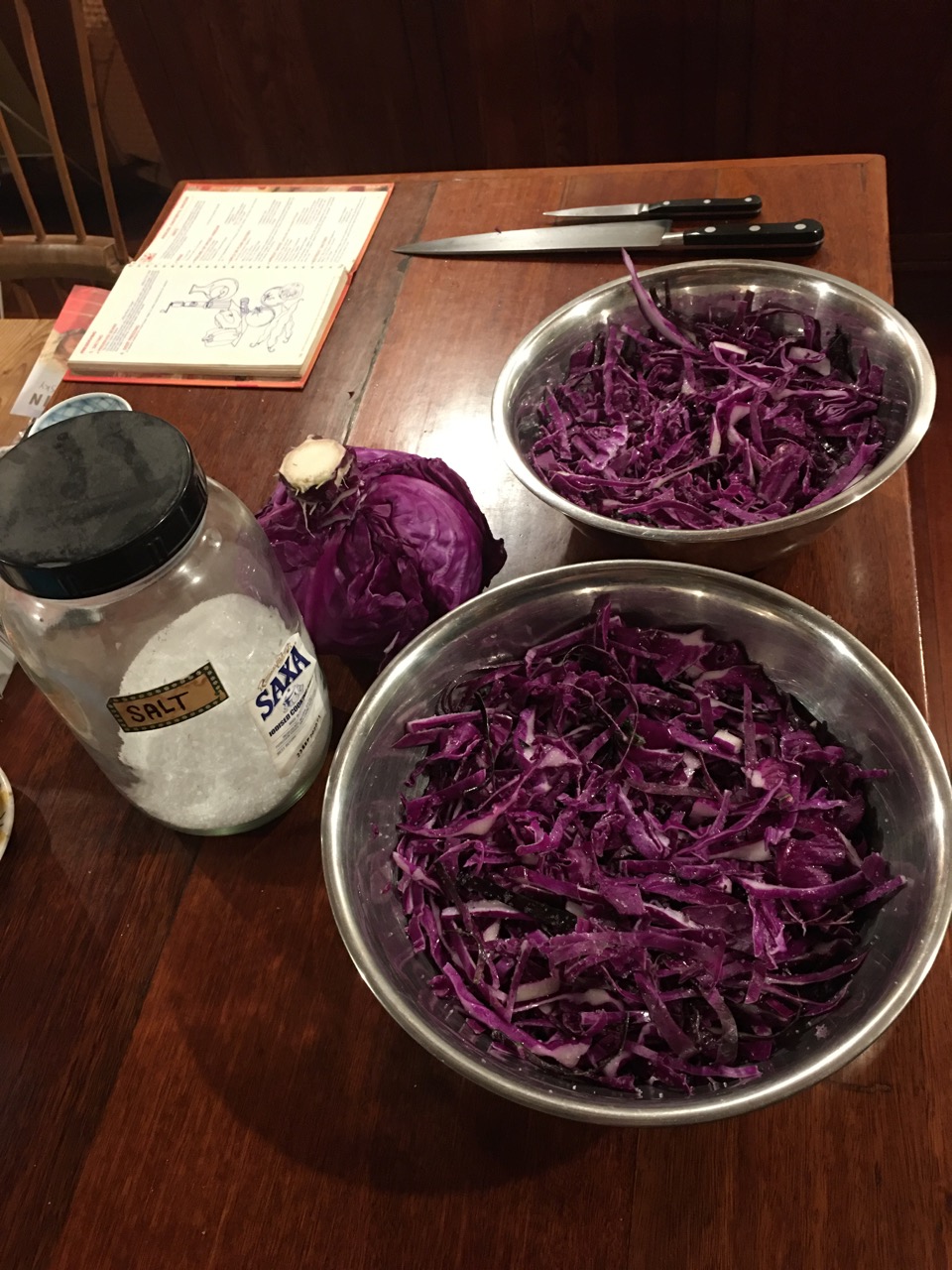 I ended up picking a second smaller cabbage and making up enough to fill 4 jars.