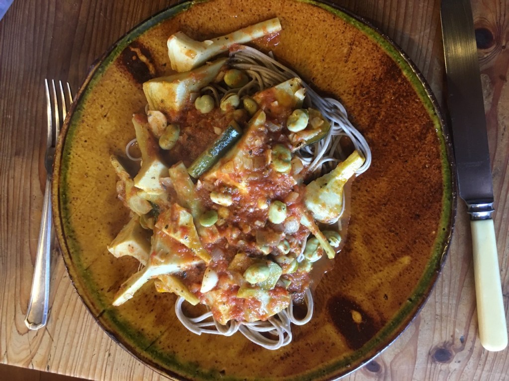 In the garden, we have picked the last globe artichokes. They are a bit past ‘best’, so need to be cut in half and have the ‘choke’ taken out.