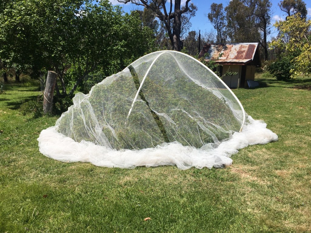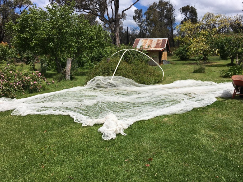 As soon as we could find the time, we were out in the garden and netted the youngberries. Safe for this season now.