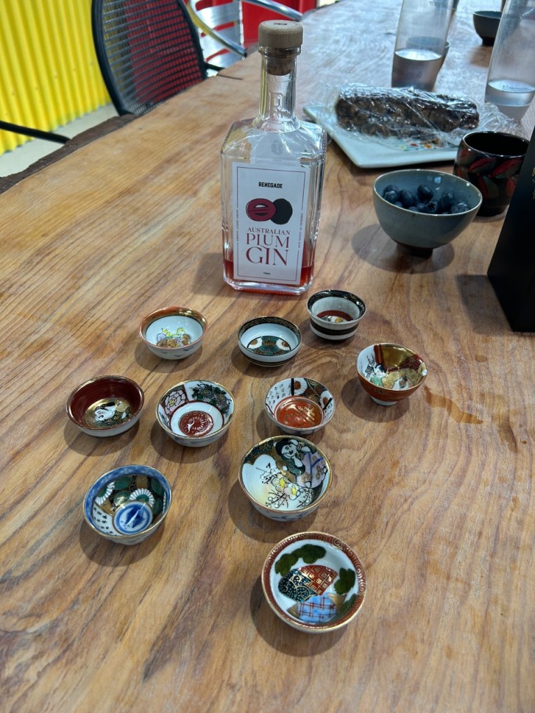 We had a bottle of his Australian Native Plum Gin. I served it in very petite antique Japanese porcelain sake cups. I didn’t want any one to get booked on the way home, so just 1 or 2 mls. It’s really delicious stuff. So intense, fruity and concentrated, just superb!