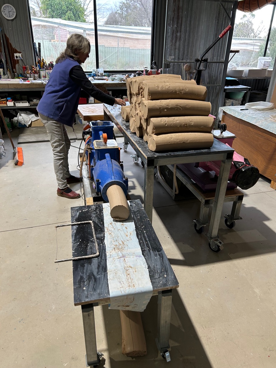 The pottery was buzzing, with every one being busy. Janine, Warren and I all gave a demo of our throwing techniques, so everyone got 3 different approaches demonstrated, so that they could choose something to concentrate on for the day.