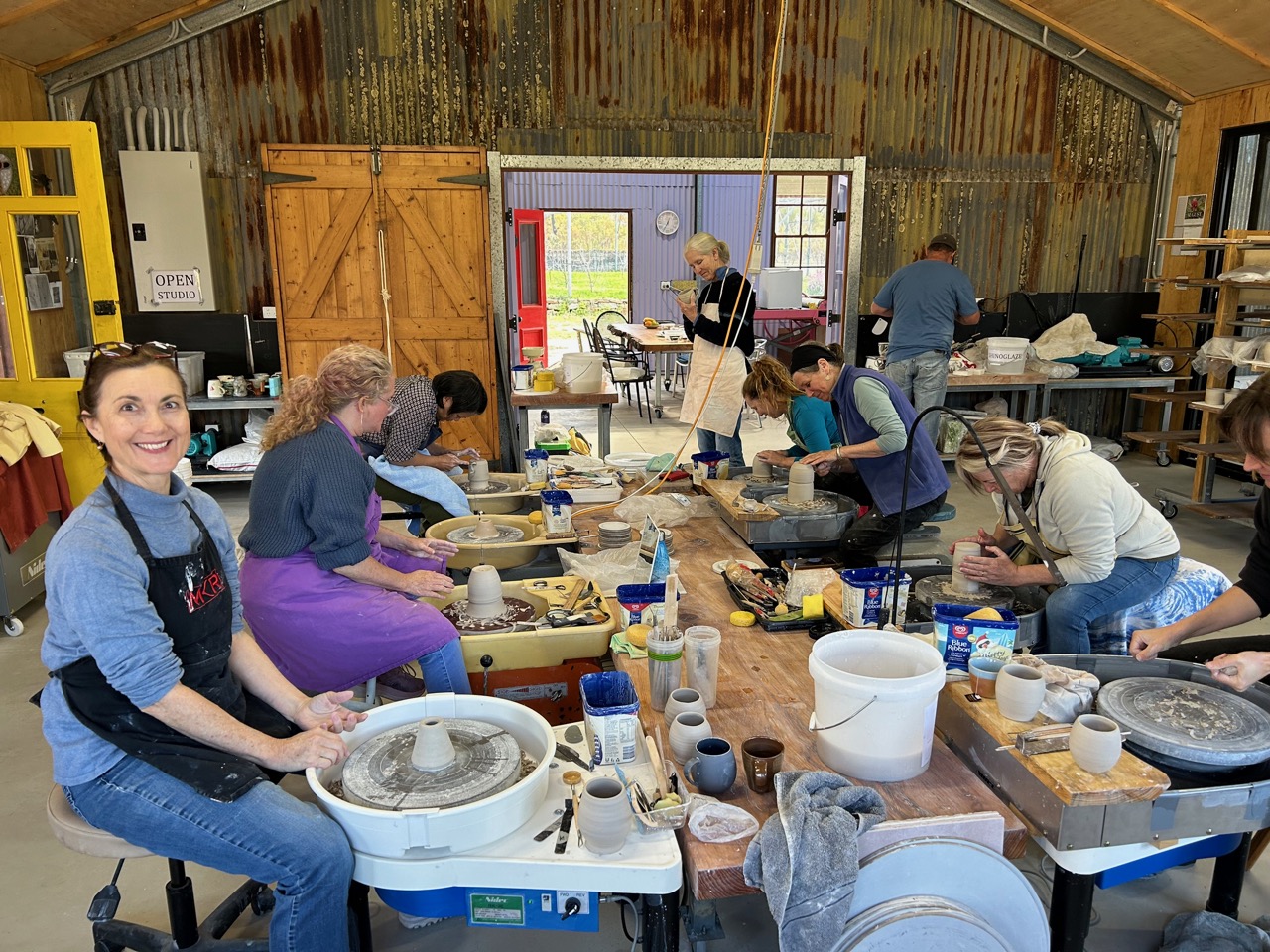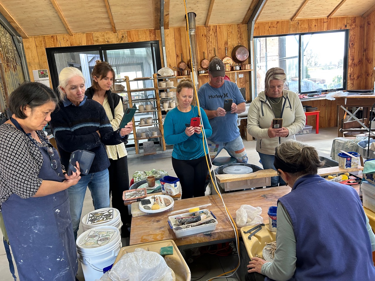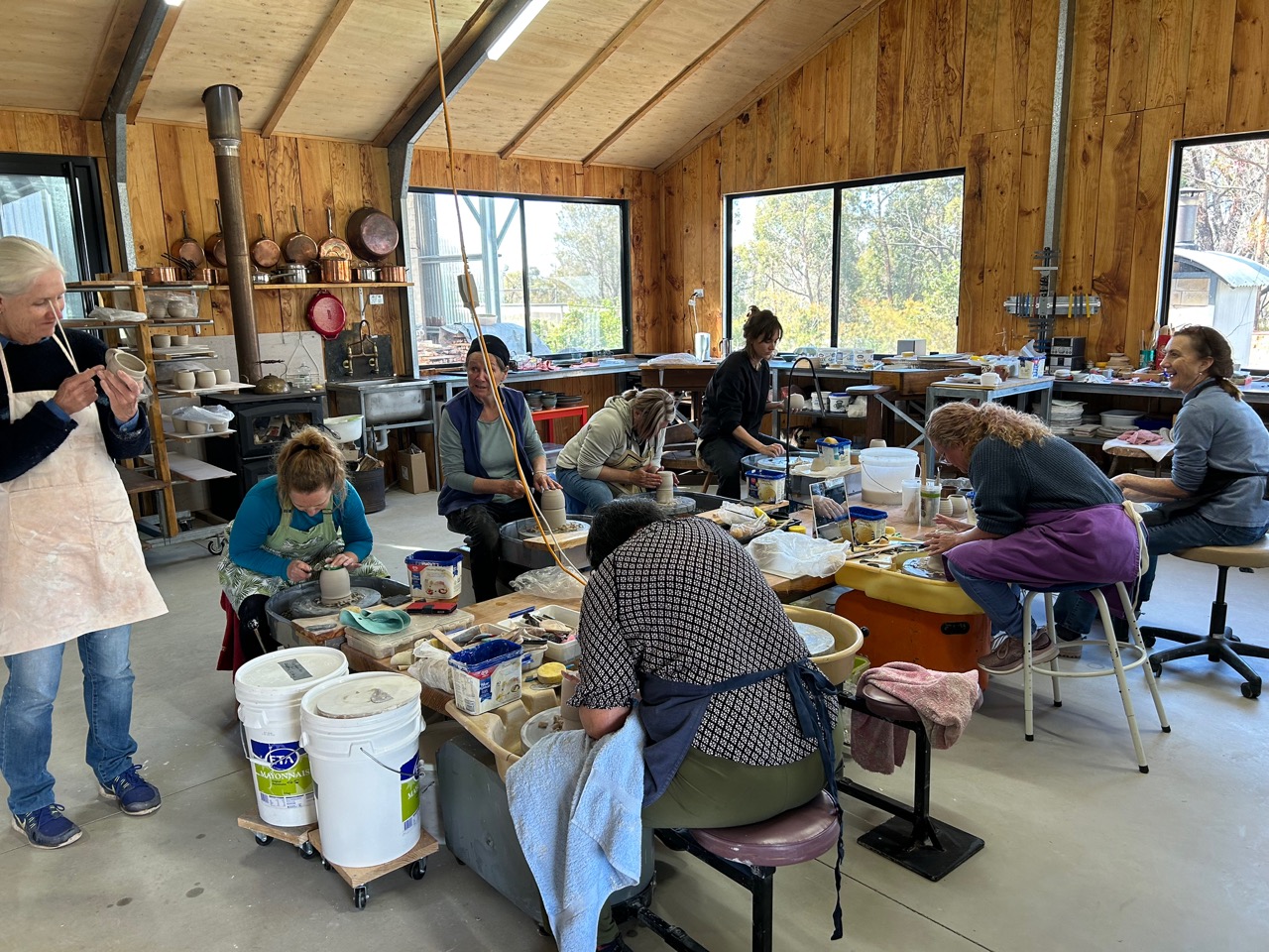 On the 2nd day we all demonstrated turning our pots, then making and applying handles. We kept everyone busy all day for both days.