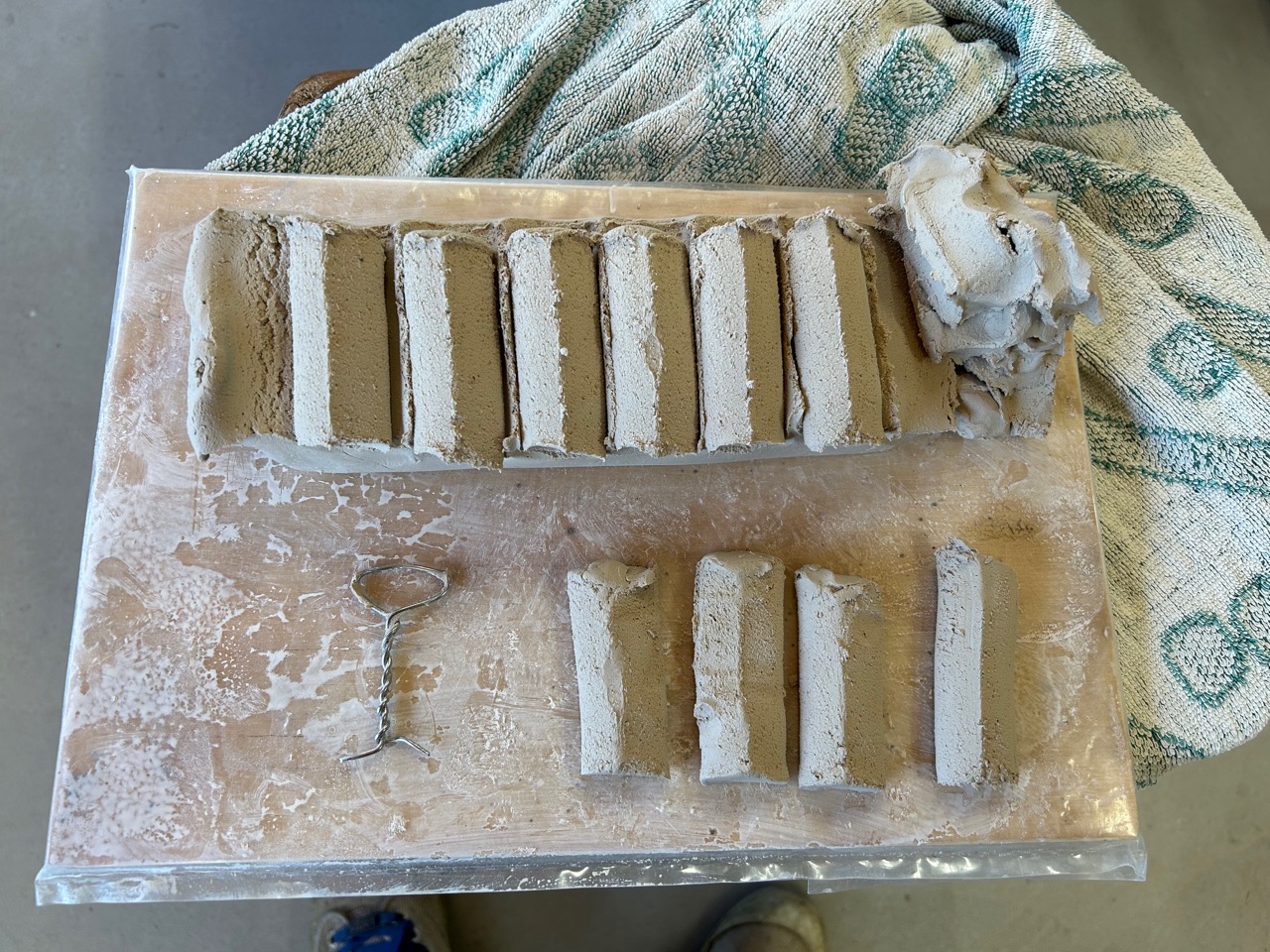 Warren demonstrated the use of a ‘caulking’ gun to extrude the basic handle shape. He also demo’d the use of a plaster mould to press mound handles.