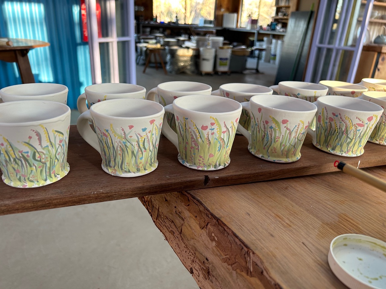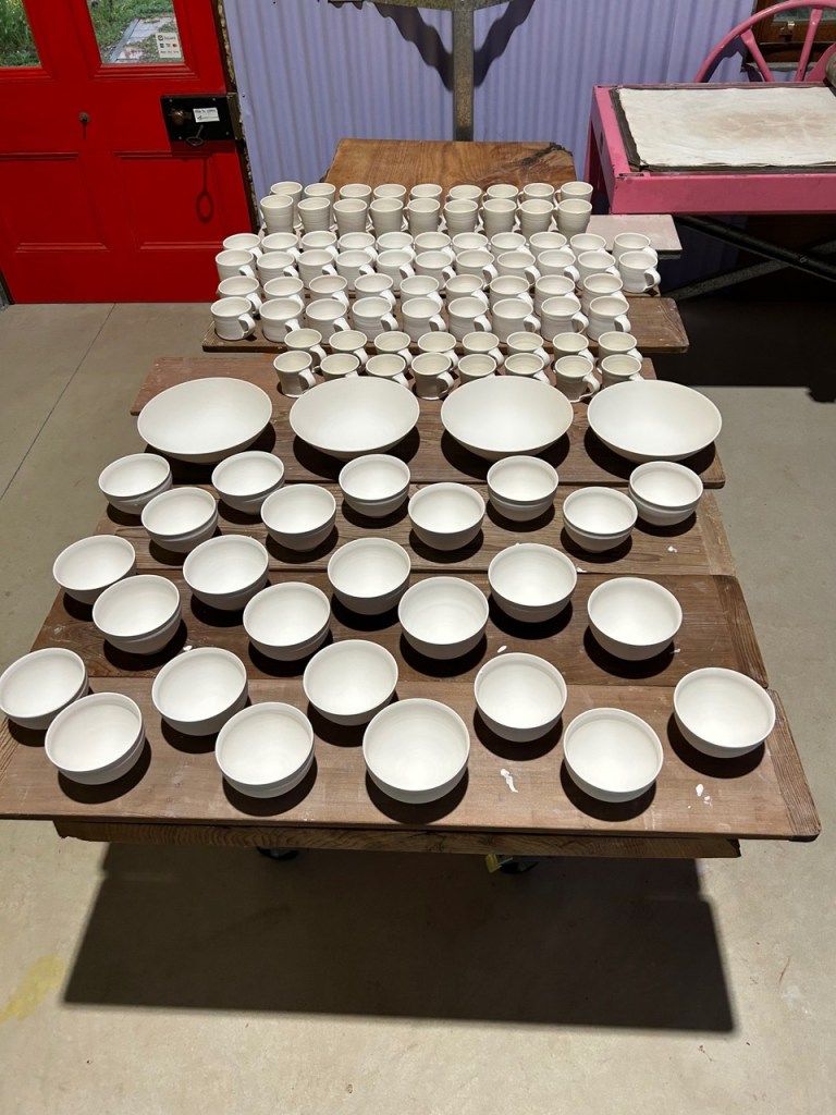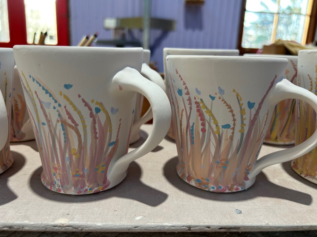 Now on our return form Noumea, we have been flat out busy glazing and decorating that bisque ware and have two kilns packed ready to fire this weekend.