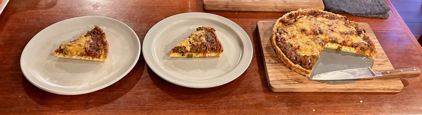 For the workshop lunch, I made a flan or tart with a baked cottage cheese base and a ratatouille topping. That didn’t last very long.