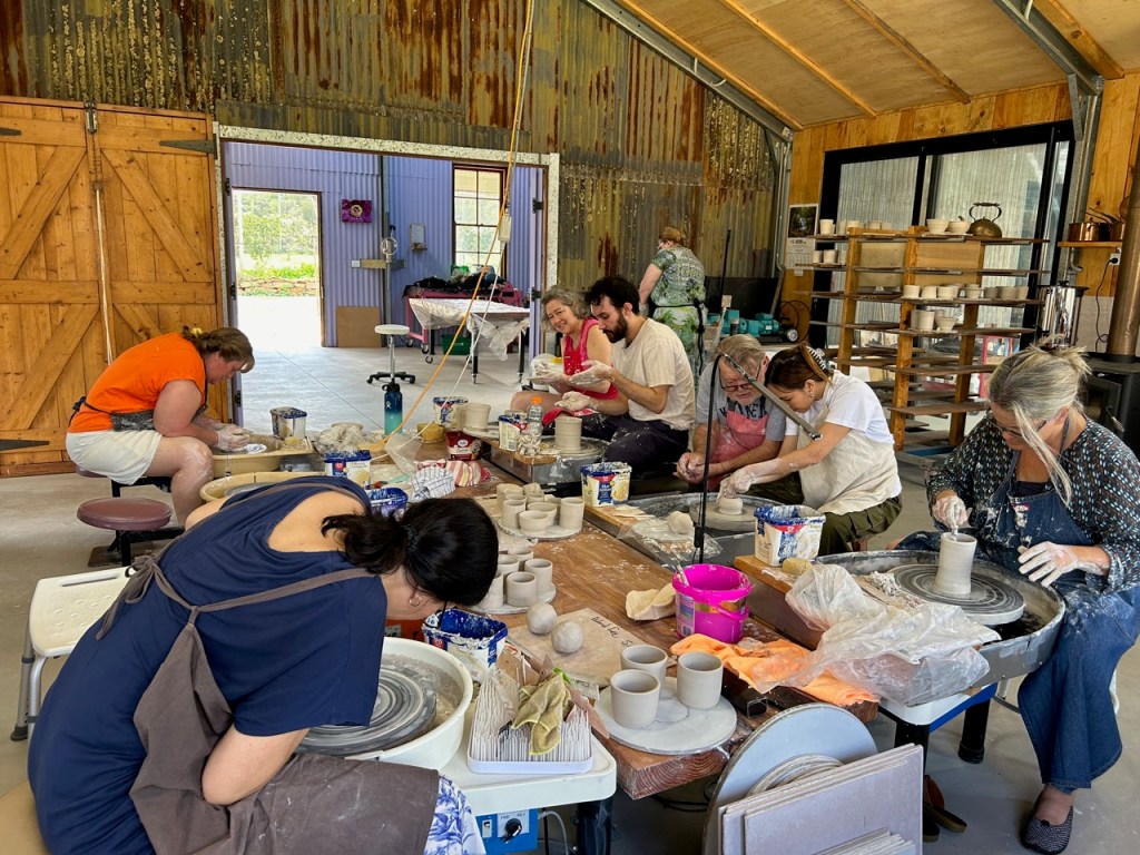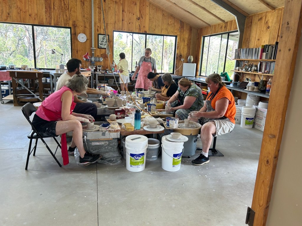 We have just completed another weekend workshop. This time a throwing class. I advertised one and filled two weekends, so we will back in the studio again with the 2nd group next weekend for the 2nd one.