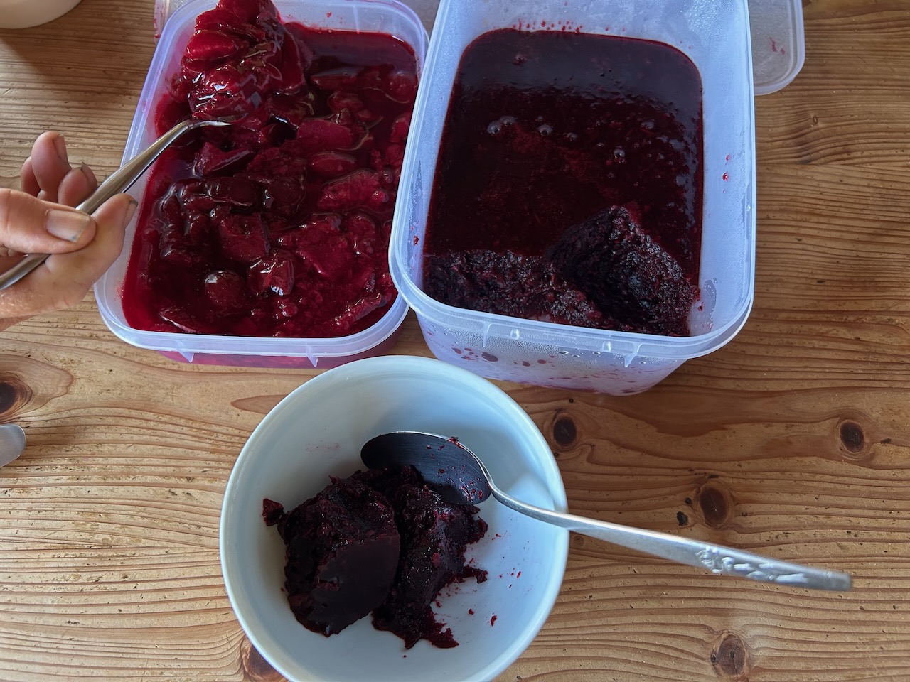 Those first two big-pot throwing summer schools took all of our time and effort to start the year. Since we finished them, a couple of weeks ago, we have had time ‘off’, playing catch-up in the garden and orchards.