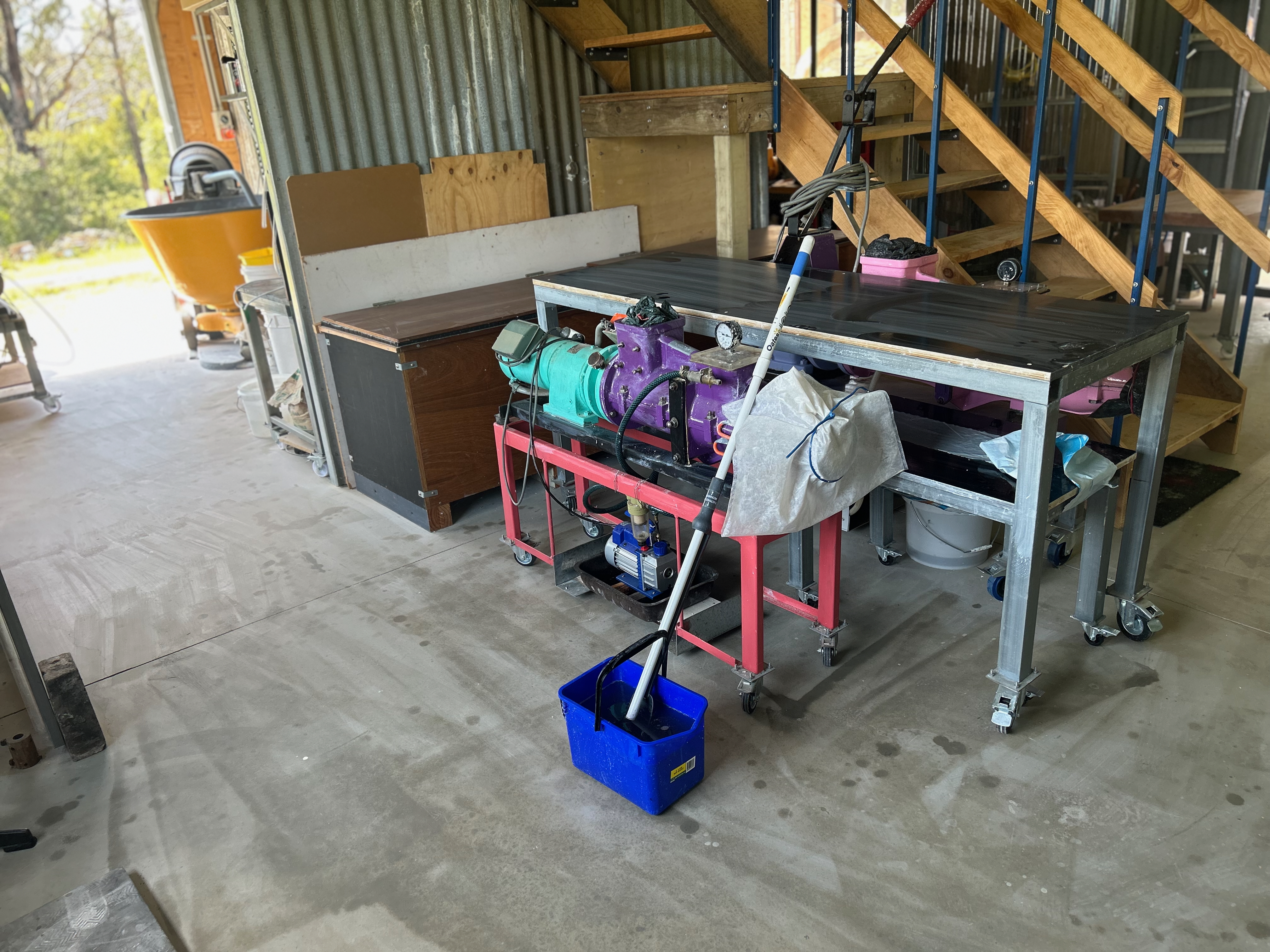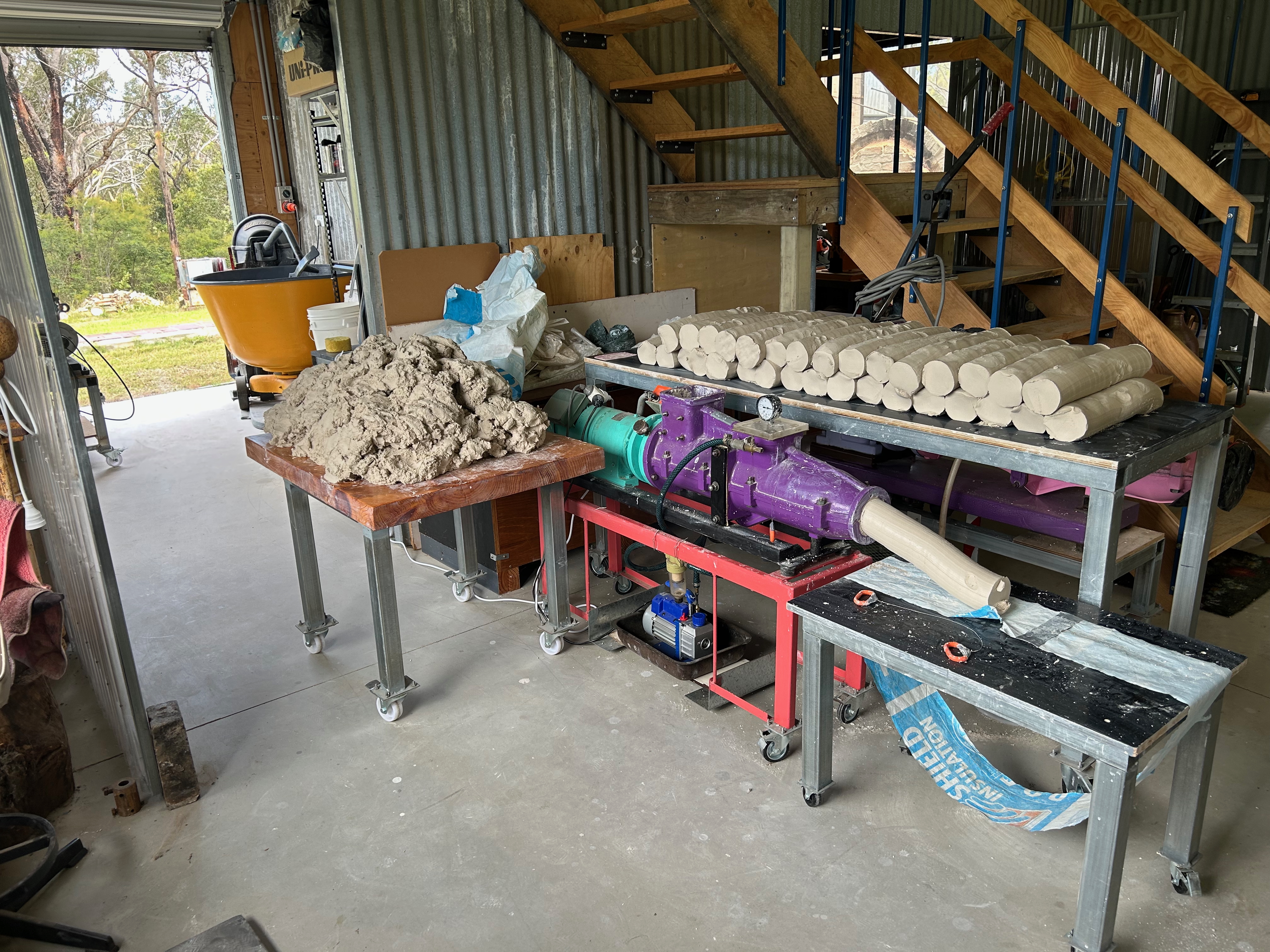 I booked a few days of help from my friend Andy, who is a local architect and environmentally conscientious builder. A rare breed! He has been very kind in offering us loads of assistance since the fire. He also offers good council and advice on environmental/building matters. I asked Andy to help me install two louvre windows up in the big pottery shed loft. I bought some louvre mechanisms and the ground glass panes online, then I built a couple of hard wood window frames to mount them in. I also made all the custom flashings to go around them. Andy did all the outside ladder work on the day, cutting the hole in the wall and we installed them without too much trouble. It gives plenty of ventilation up there to take the heat out of the loft, but also brings in so much light and the view is good too.