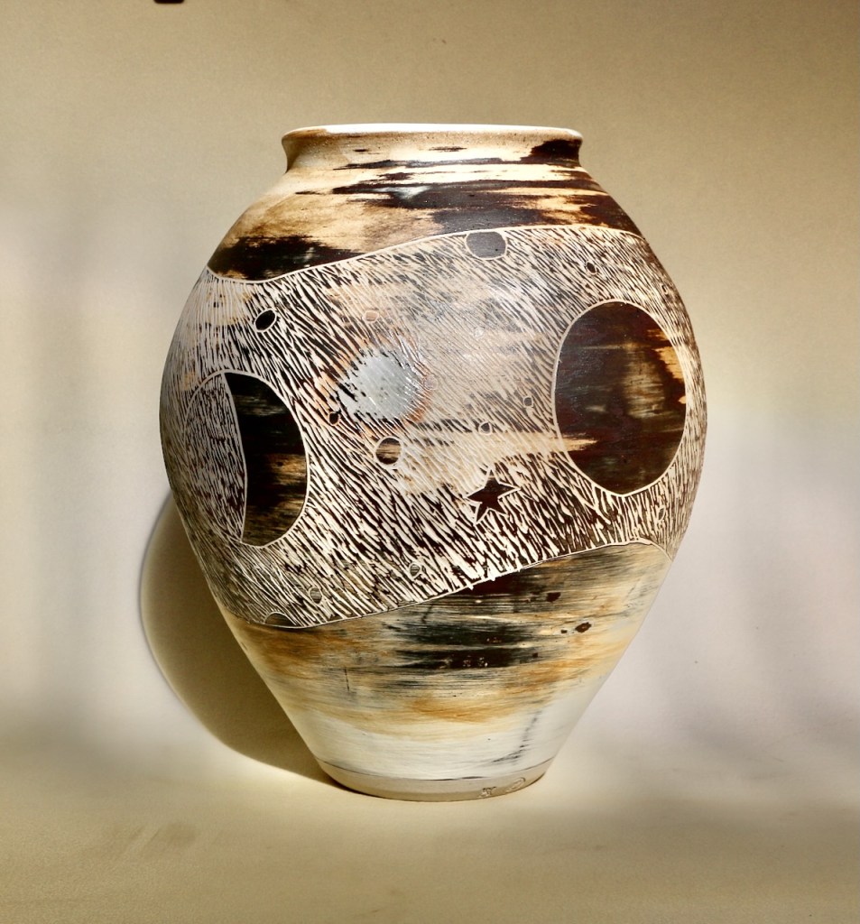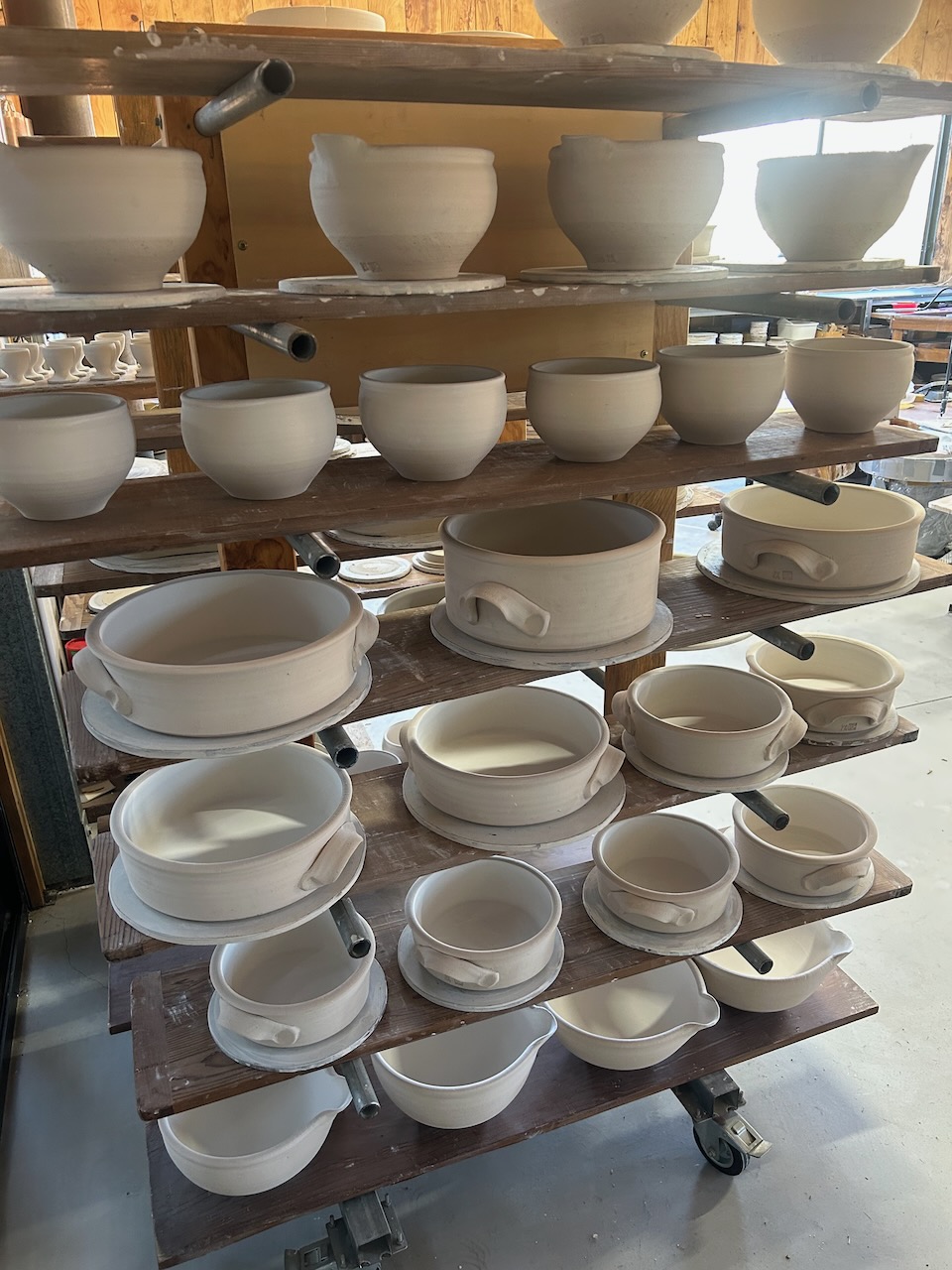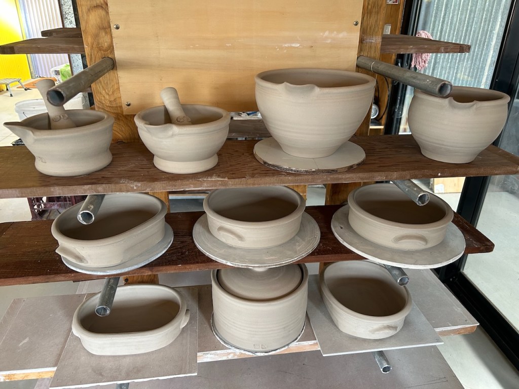 It fills 10 pages of my glaze note book this time around. I have to keep detailed records of what I do and why I’m thinking that it might be a good idea. Sometimes, it takes so long to get the firings done at the temperature that I’m imaging will be best and in the atmosphere that I want, and in the kiln that will give me those ideal conditions, so that If I don’t write everything down in detail, then I can forget what I was thinking and why I went to all the trouble. Hopefully, it will help me to understand both the results and more about myself in a few weeks time, when they are all fired, and I can decode the results!