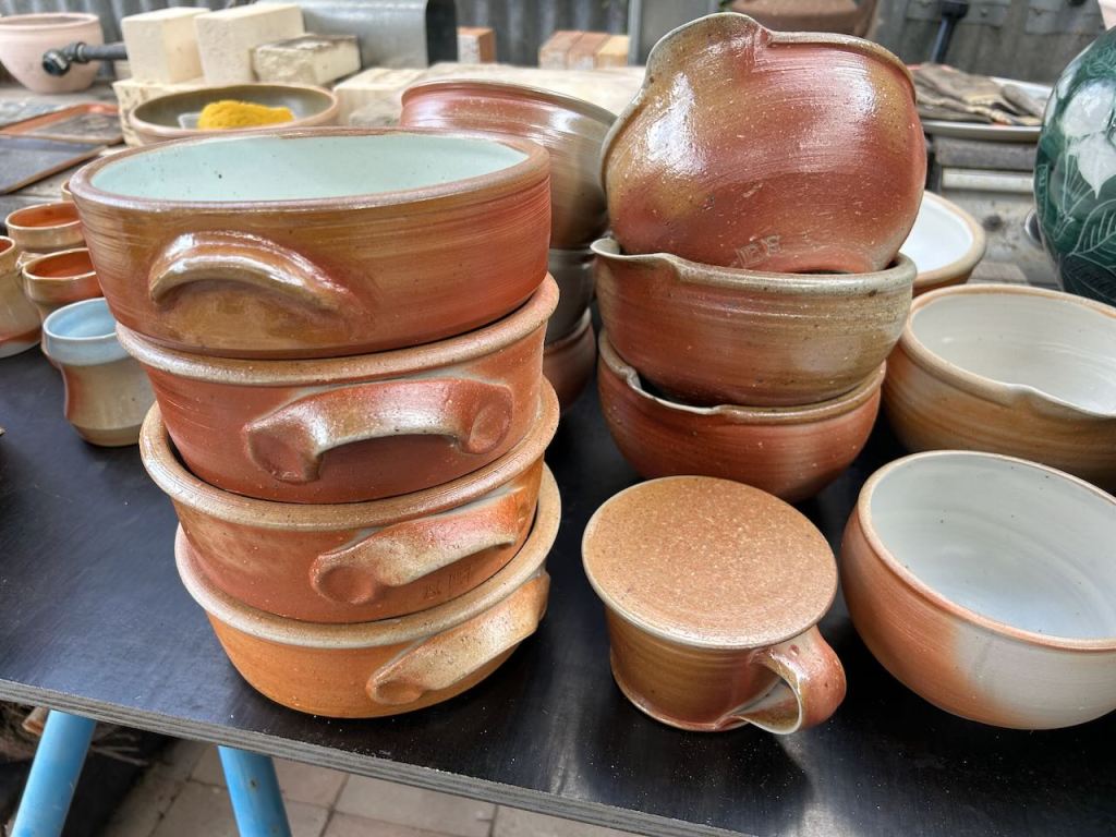 When I was doing my PhD, I did every test in triplicate, so that I could fine them in oxidation, then reduction and also in the wood fired kiln. As each kiln gives its own variation to the test. Having done that very thorough exploration, I’m over it and these days I only make the one series of tests, and fire them in the kiln that I think will deliver what I’m looking for.