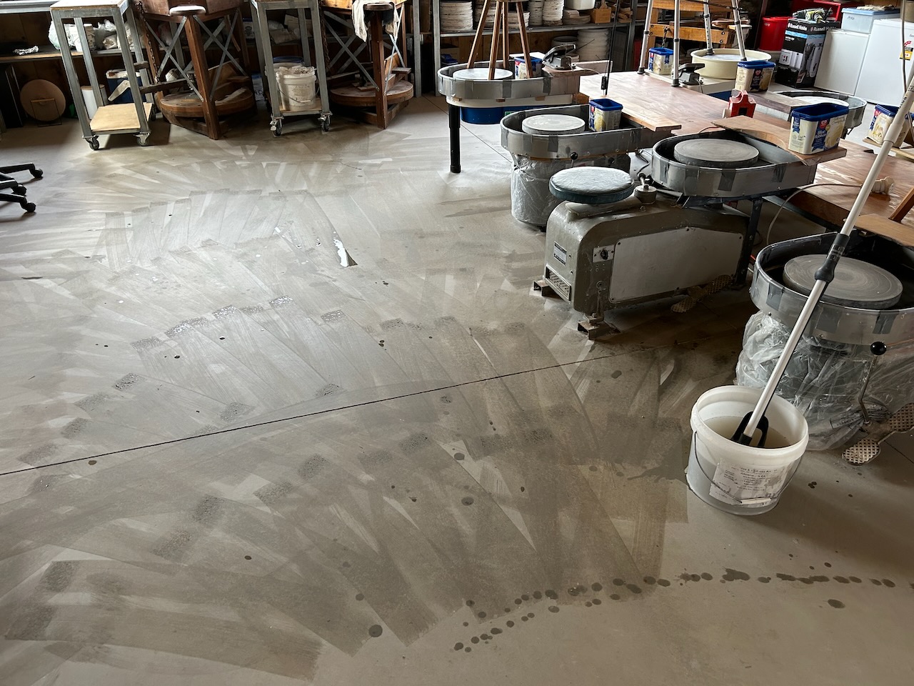 We had 65mm of rain at one point. I thought about what to do for a while and came to the conclusion that it was probably best if I decided to do all those glaze tests that I had been meaning to do for a while. I certainly didn’t want to do any outside work. So I spent a day rolling out slabs and pressing out grid-tiles from my standard plaster grid-tile mould. This ensures that all my test tiles are the same size and shape, so that I can compare them at any time with tests made years before if needed. Tragically, I lost 3,000 glaze tests in the fire, so I’m starting again.