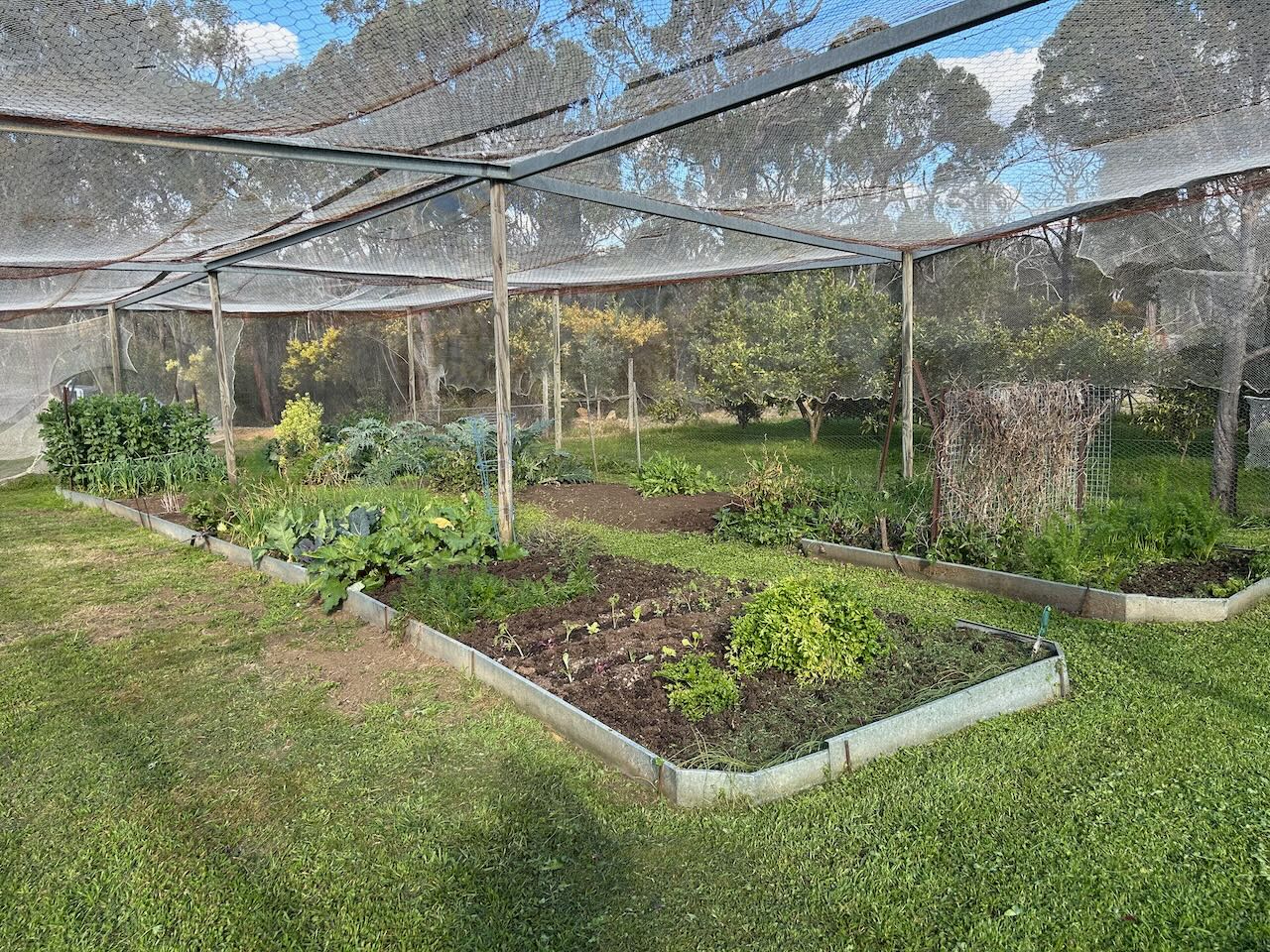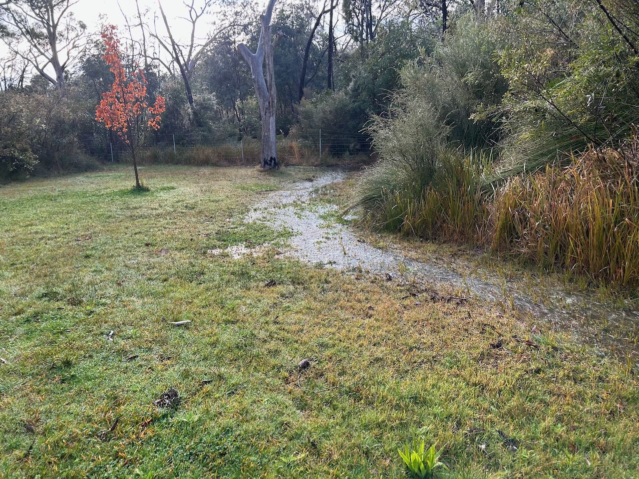 It’s been raining again quite heavily. We now have 4 different little streams flowing across our land, where the dams overflow, and the front lawn is under 25mm of water, like a slow moving shallow lake gently flowing across our kitchen vista.