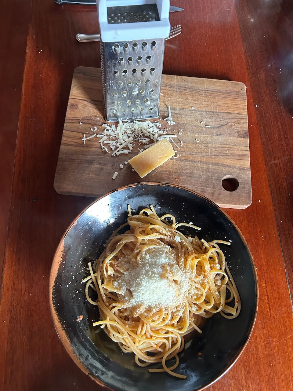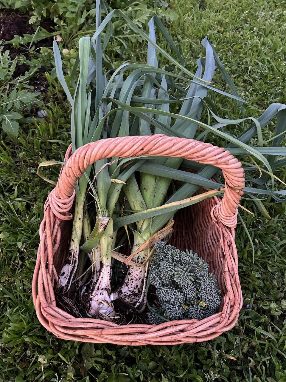 When there comes a break in the rain, I get out and pick vegetables for dinner. This time is leaks, broccoli, Brussel sprouts and carrots. I’m planning baked veggies with a mustard infused béchamel source for dinner. I make a quick and warming lunch of pasta. I tried to steal the spaghetti from the supermarket, but the female security guard saw me and I couldn’t get pasta!