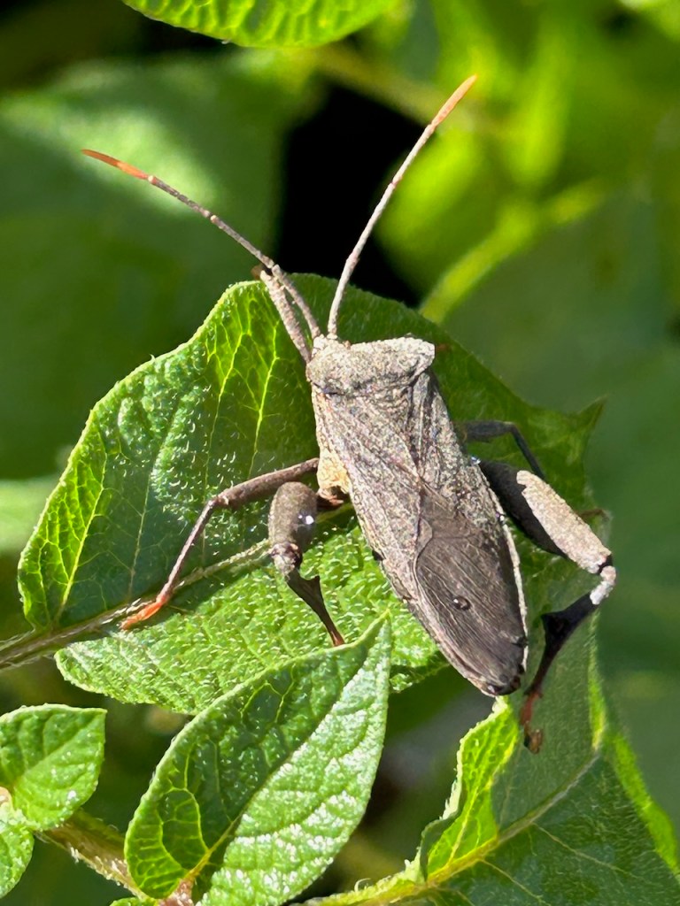 On the subject of potatoes, we have had a visit from a new and unusual bug into the veggie garden. Some sort of elongated, grey, shield bug. They group in pairs around the tender top shoots and suck the living daylights out of the growing tips of the potato plants. I haven’t seen these little critters before, so I had to look them up. They turn out to be a South East Asian ‘sweet-potato’ bug. Also known to be found in the North of South America and the Southern parts of North America. How they got here I have no idea. I can only surmise that with global heating, they are able to colonise newly warming fresh territories? So hello and hopefully good bye!