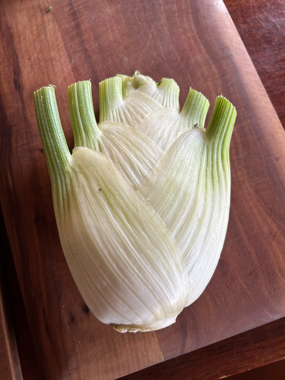 I simmered the herbs in a little bit of milk to draw out the flavours, then layered the finely sliced fennel and potatoes with sour cream and poured the strained milk over and through it all. I finished the dish with a camembert cheese placed on top to melt through the dish. As if the tub of sour cream wasn’t quite enough, and topped it off the some grated 36 month aged cheddar. I was happy with it and no one complained.