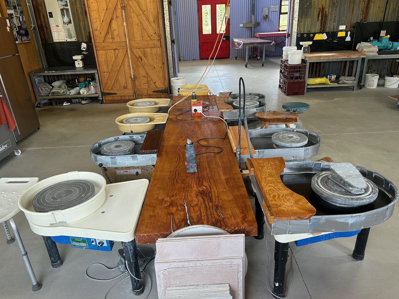 As we are hosting a 4 day summer school in the coming week, I cleaned out the pottery and transformed it back from a sales room for the Xmas sale and back into a throwing room. I took the opportunity to really clean down the benches and wheel tops, then gave them a coat of tung oil to protect the wood for another year. All this wood was milled on-site here from trees that we grew ourselves. I want to honour this timber and look after it. It’s just one small, but integral part of our 50 year history/legacy of living and thriving here.