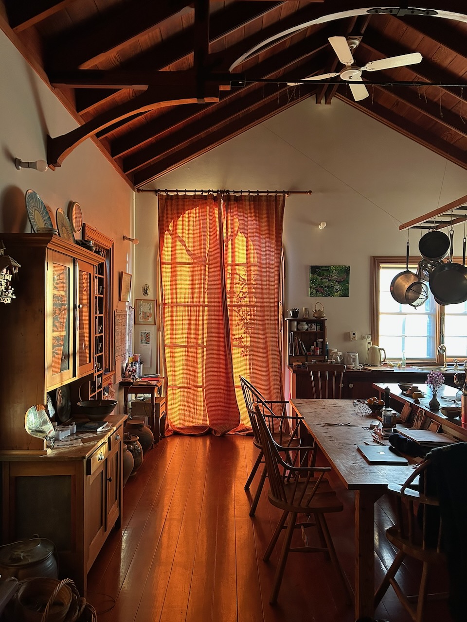 After almost 40 years now, we are finding the kitchen is getting too hot in summer. We had to close the old heavy winter curtains during the day in summer to try and keep the heat out. I added a huge sheet of perspex onto the inside to try and create a poor mans sort of double glazing, It didn’t really work that well. It helped a bit in winter with retaining the heating, but summer is our big new problem here with the huge increases in global heating.