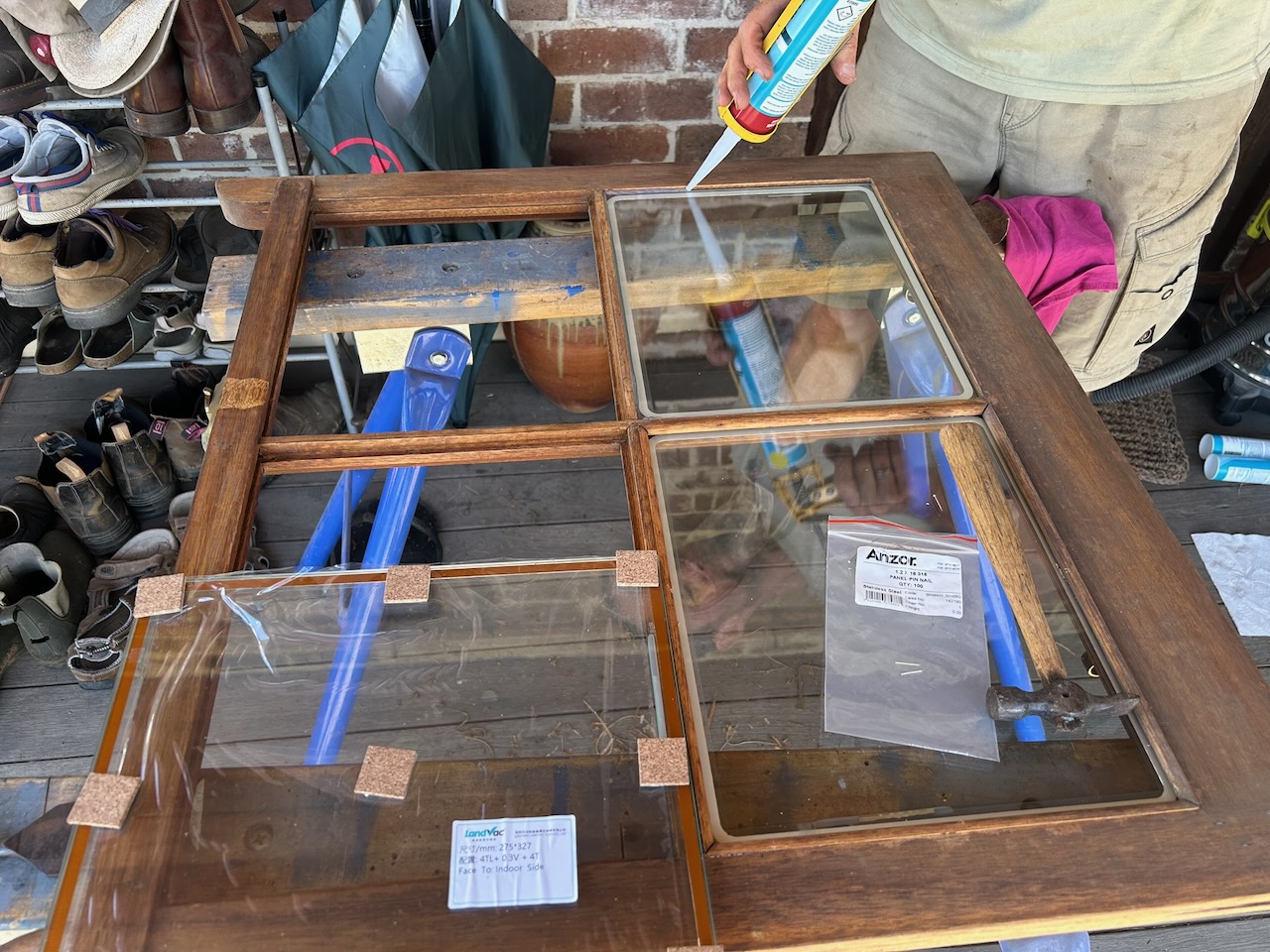 Going on the success of last summers window glass up-grade. This year, I decided to replace all the small panes in the multi-pane double hung windows all around the rest of the kitchen. I couldn’t fit double glazing in them, as there is no room in the double hung timber frames to allow for a 20mm thick argon-filled double glazed glass pane. I did a bit of research, some years ago now, and came across vacuum filled double glazing. (or should that read vacuum emptied, double glazing?) I kept my eye on the concept over the years, and as the price slowly came down. I was encouraged to take the leap!