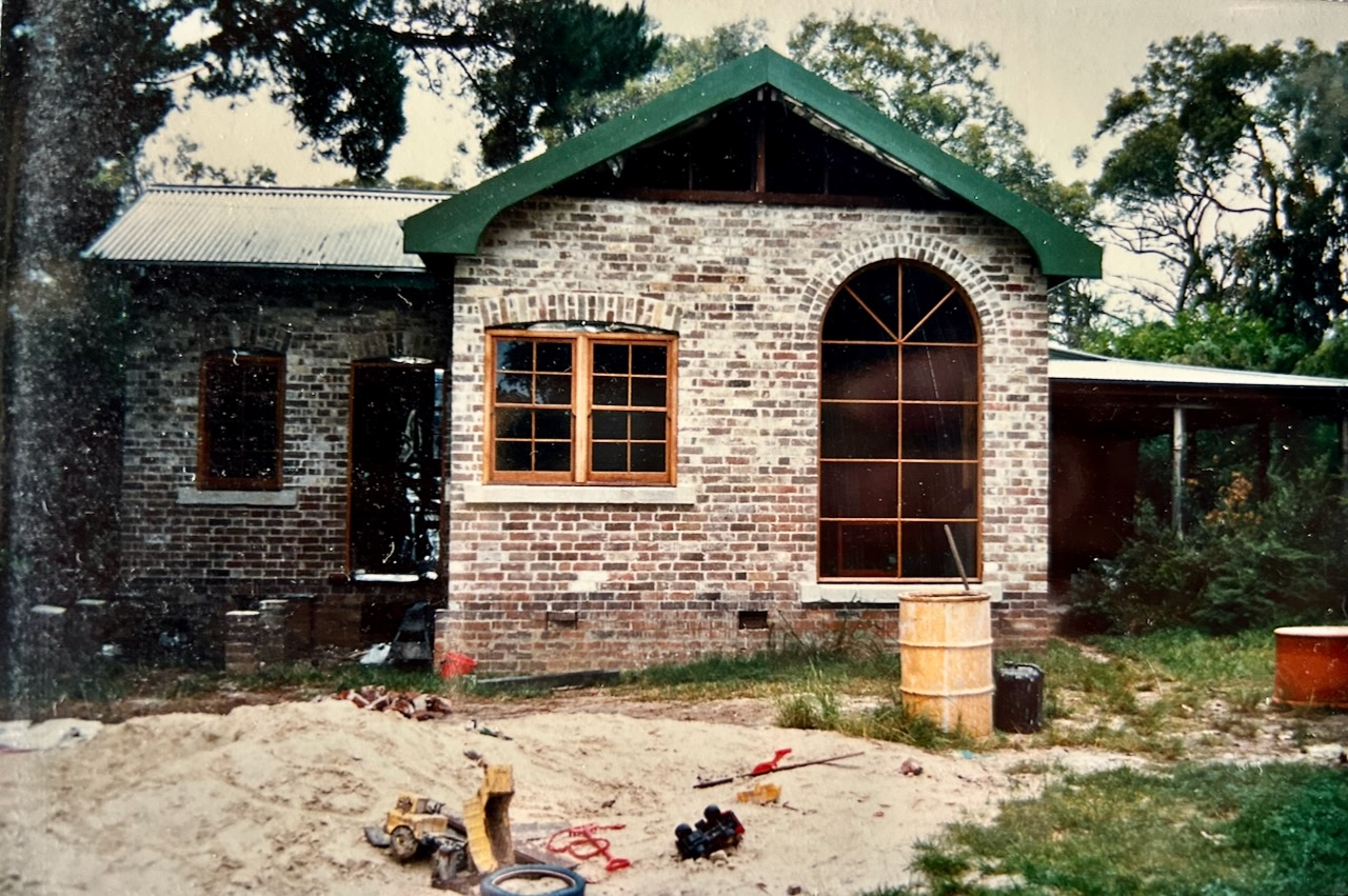 I told him that I would finish the demolition and clean up the site and remove all the demolished building materials for them free of charge. I’d even be prepared to buy the station off him. He asked how much and I said $10 ! He laughed. Said try again. I said $100 and he said OK. That was it. We shook hands on it. I bought the ruins of the old railway station that importantly for us was built out of the same old local sandstock bricks as our school. I paid a coupe of friends and we spent a week, sorting, cleaning, stacking bricks onto pallets and had them picked up and taken to our place each evening, so that no one would steal them from the side of the road. Each day our friend Robert helped Janine, who had just given birth to our son Geordie, to unstack the bricks on the side of our driveway, so that I could use the same pallets over again the next day to move more bricks. That is how we managed to build our house out of matching old sandstock bricks. So fortunate. So lucky, Such a fluke!