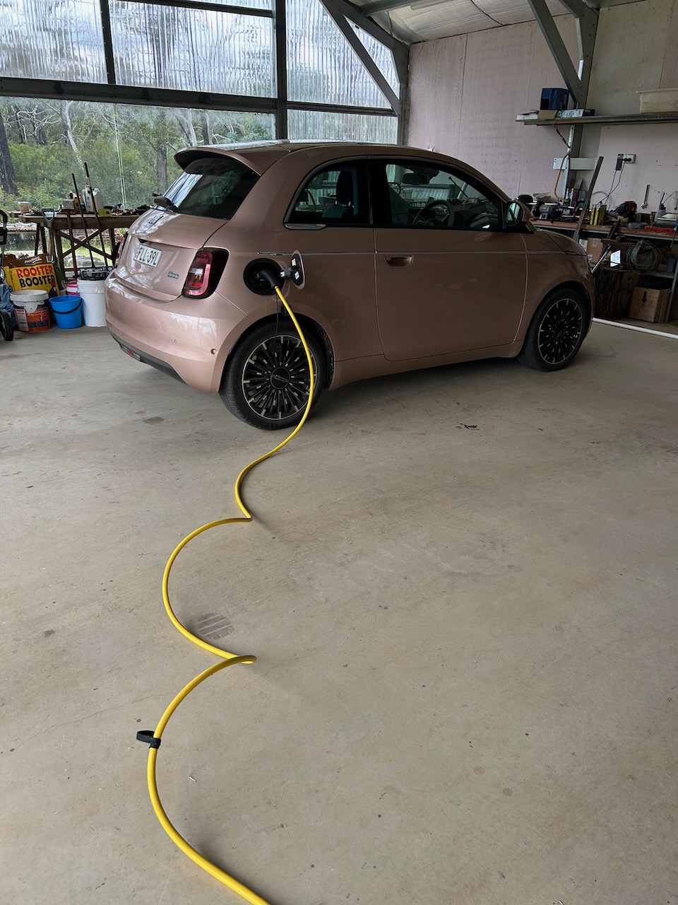 I love Janine’s plug-in electric car, so much so, that in December 2024 I bought a used, fully electric Fiat 500e ‘bambino’. This recent electric version of the old classic ’50’s design is incredibly cute. It can go 300kms on a full charge, which is enough to drive to Sydney and back.