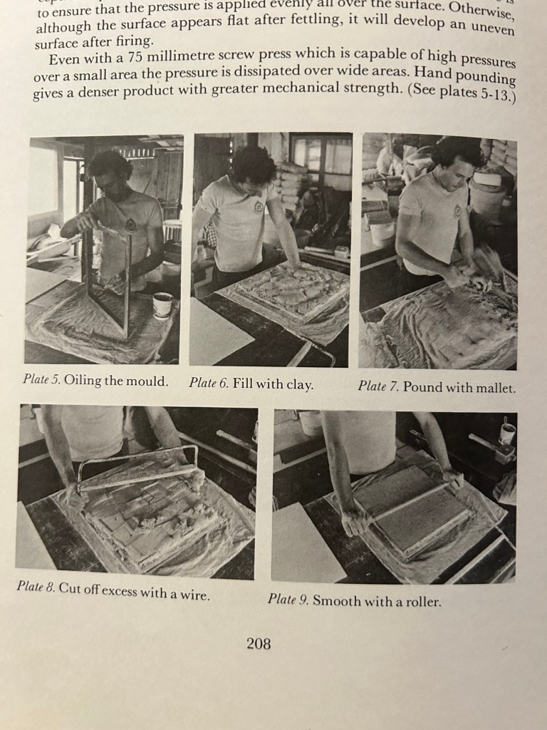 My recipes and pictures of me making the kiln shelves and props were all illustrated in the book ‘Handbook for Australian Potters’ published in the early 80’s. Pages, 206 to 212. Below, I’m shown in my youth, in these images, taken by Janine, of me making kiln shelves, fearlessly declaring my independence and learning to be self-reliant. I’m a lot older and fatter now, but nothing else has changed. I’m still enthusiastically practicing self reliance!