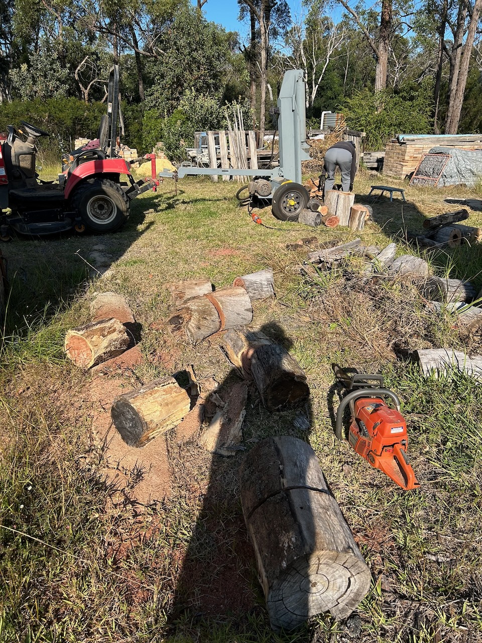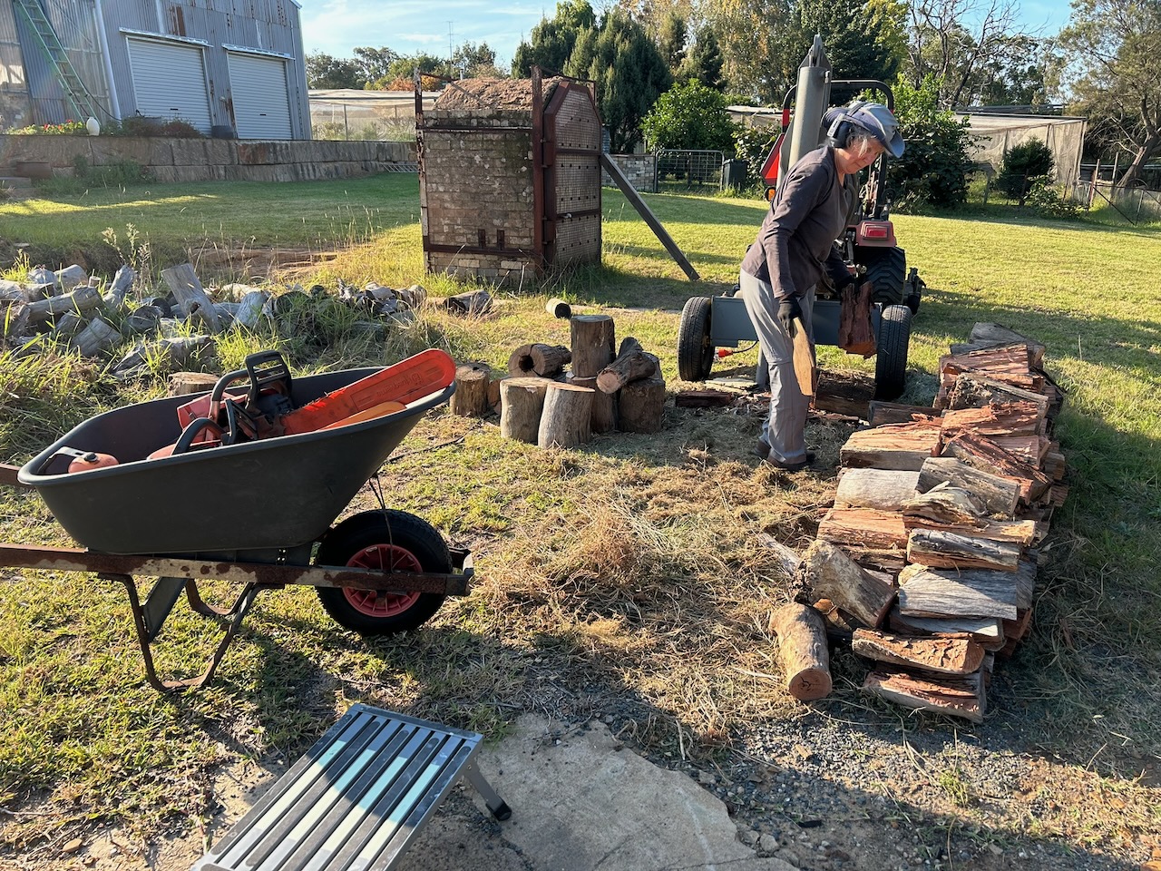 I put the glaze kiln on early in the morning, and fired a moon jar in one of the electric kilns, the firing finished just after lunch, then I charged the car in the afternoon. As there was plenty of autumn sun. We finished the day with a couple of hours of wood cutting and splitting fire wood using the last of the solar power from the waning sun. This stack of split hardwood will keep Janine warm over the winter.