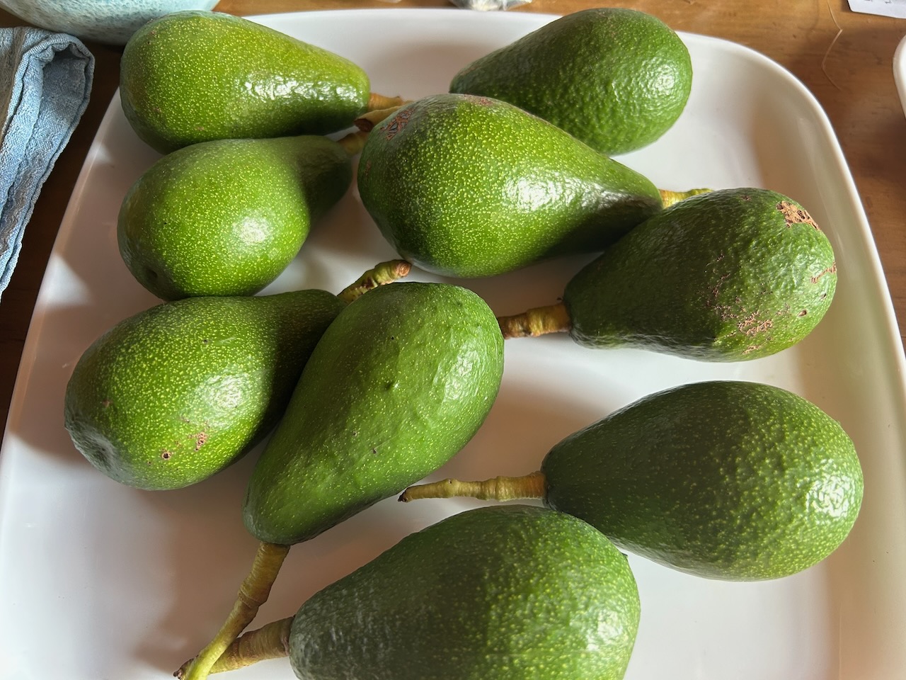 This will leave us with some avocado respite over the summer in January – except for the few fruit that we didn’t see and will be falling from the Hass and Wurtz trees by then. Beware of Falling Fruit!