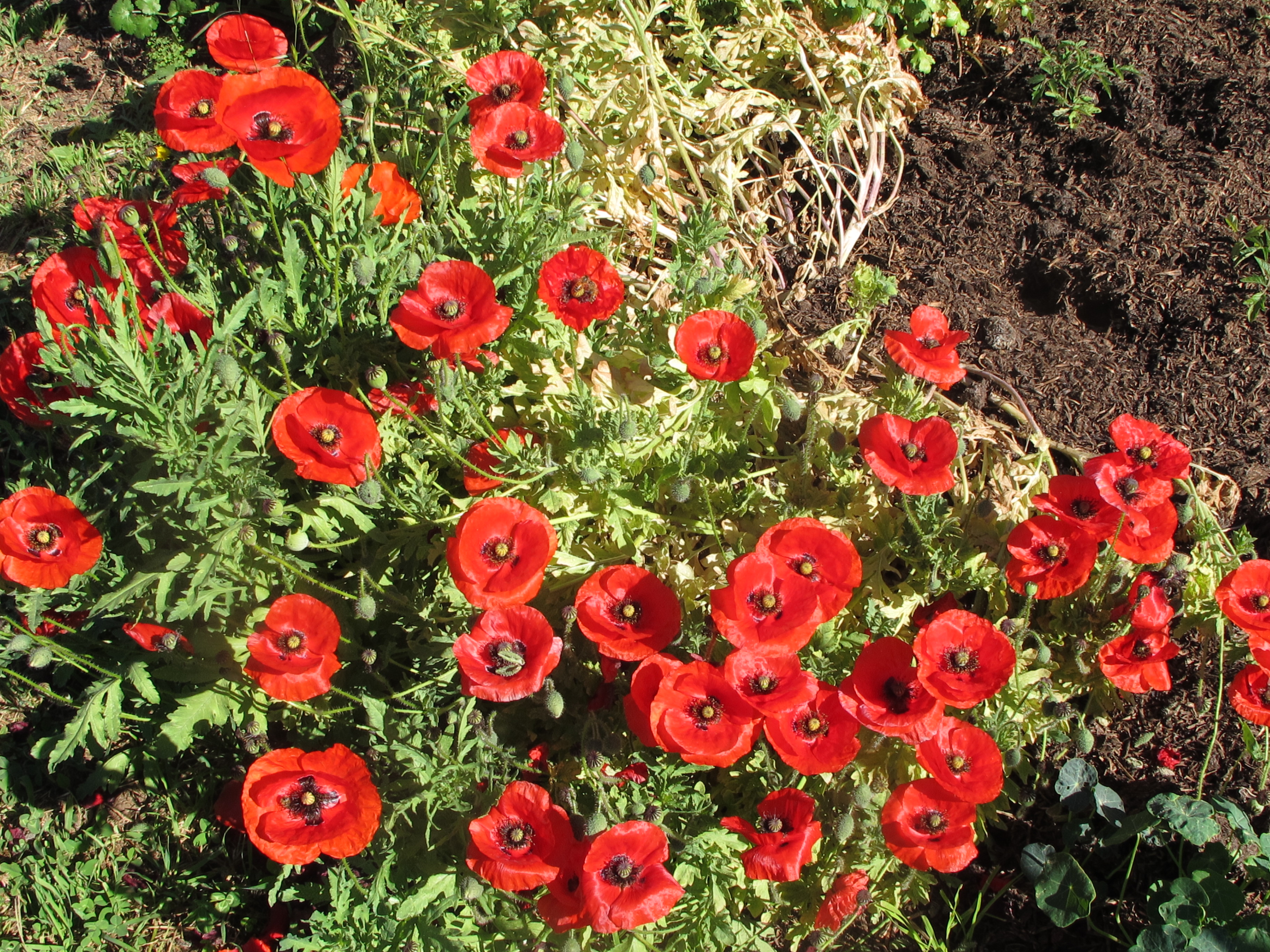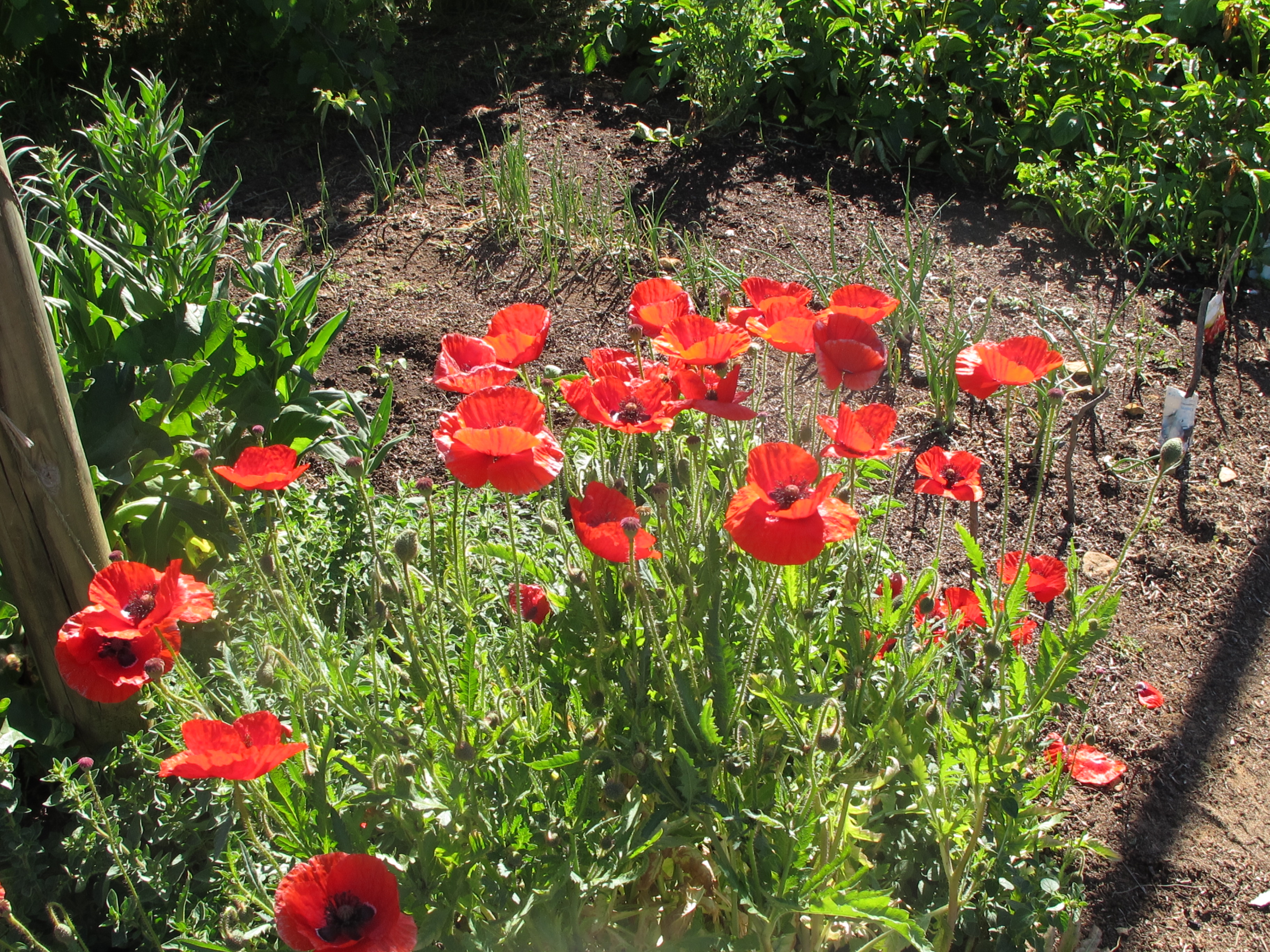 The hot dry weather suits the poppies. They are doing really well in amongst the vegetables.