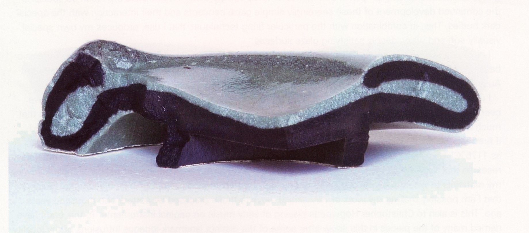 Fig. 12. Blackware bowl with porcelain glaze flushed to opalescence by natural ash impingement.