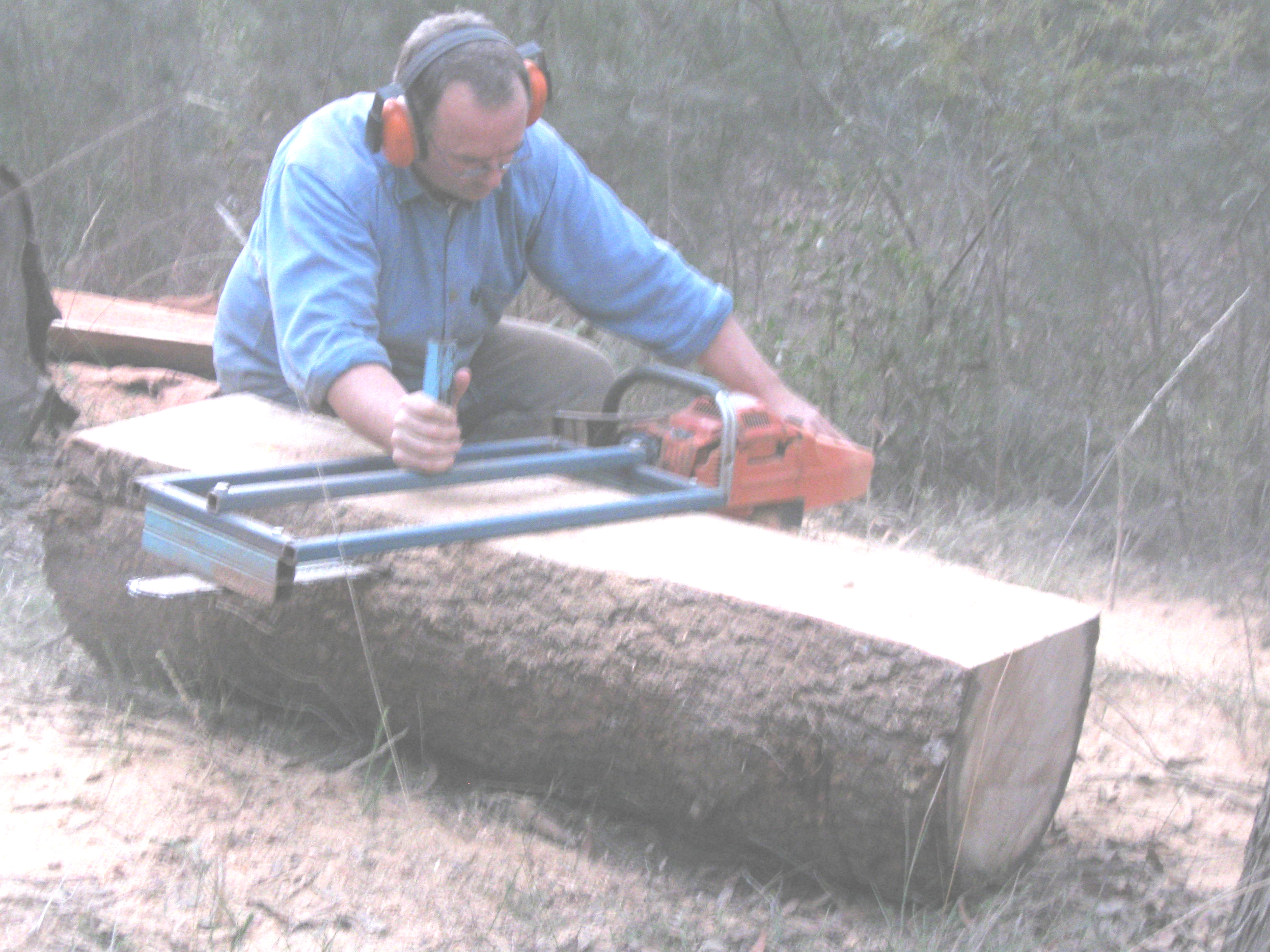 Fig.15. Milling a log with my home made chain sawmill