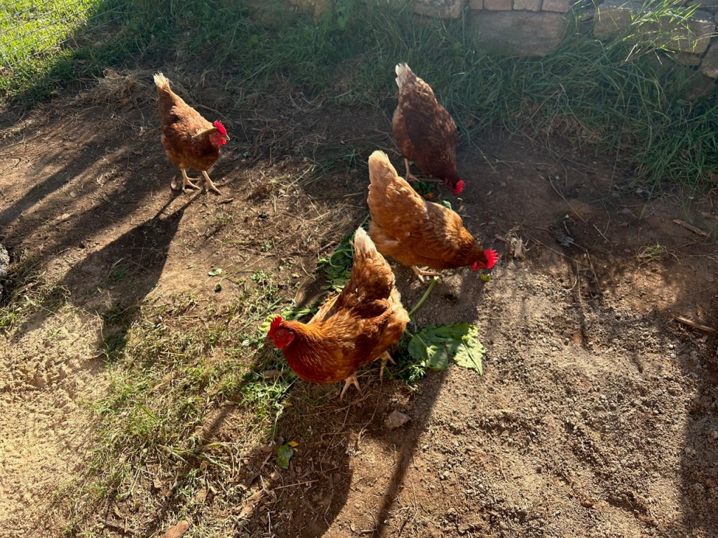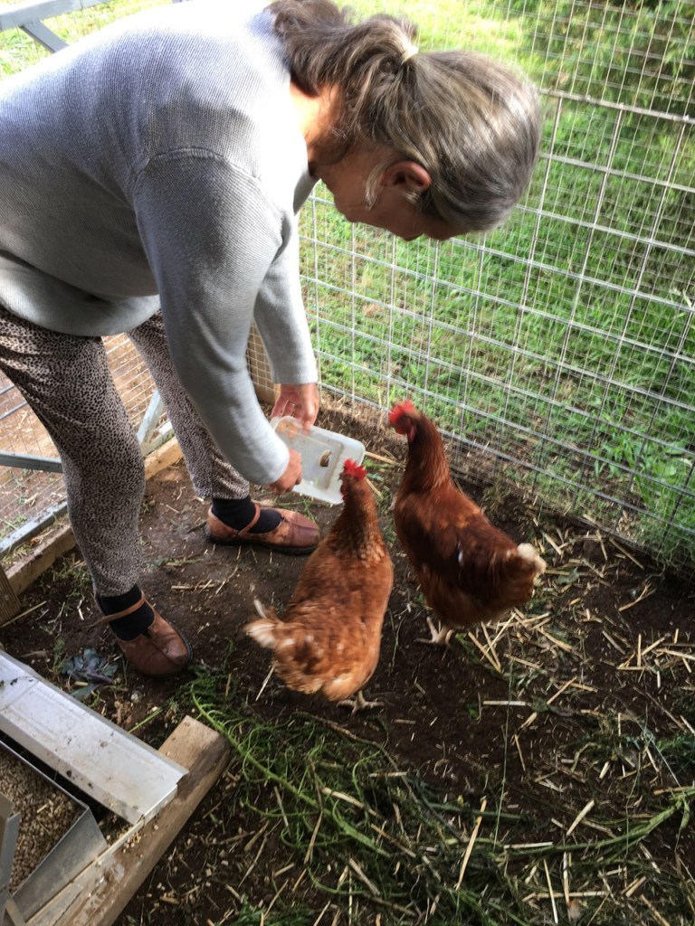 We usually keep between 2 and 4 chickens here on our 2 hectares. That’s a stocking rate of 1 to 2 chooks per hectare! I think that because chickens are birds, they prefer to flock together, so a few more wouldn’t be a bad thing, even a good thing, but we just don’t need more than 2 eggs a day each, so we need to keep our flock small.