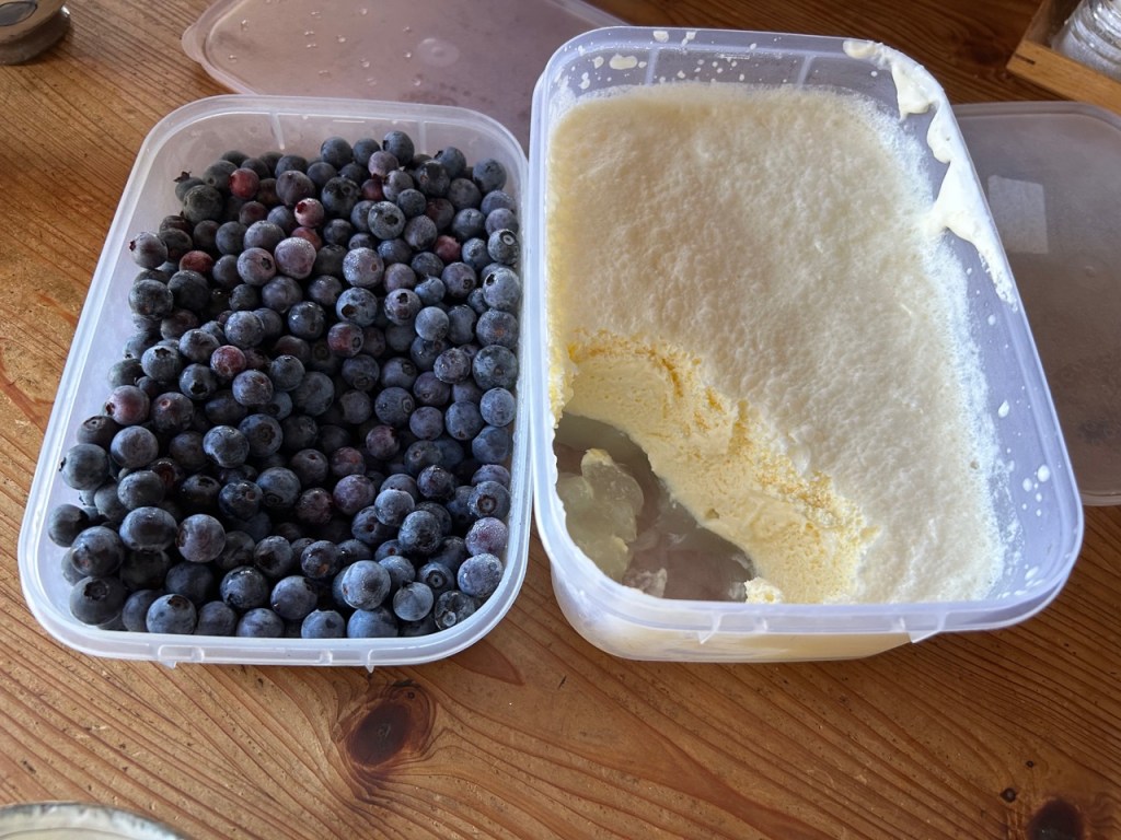 It goes quite well with our excess of blueberries as a desert.