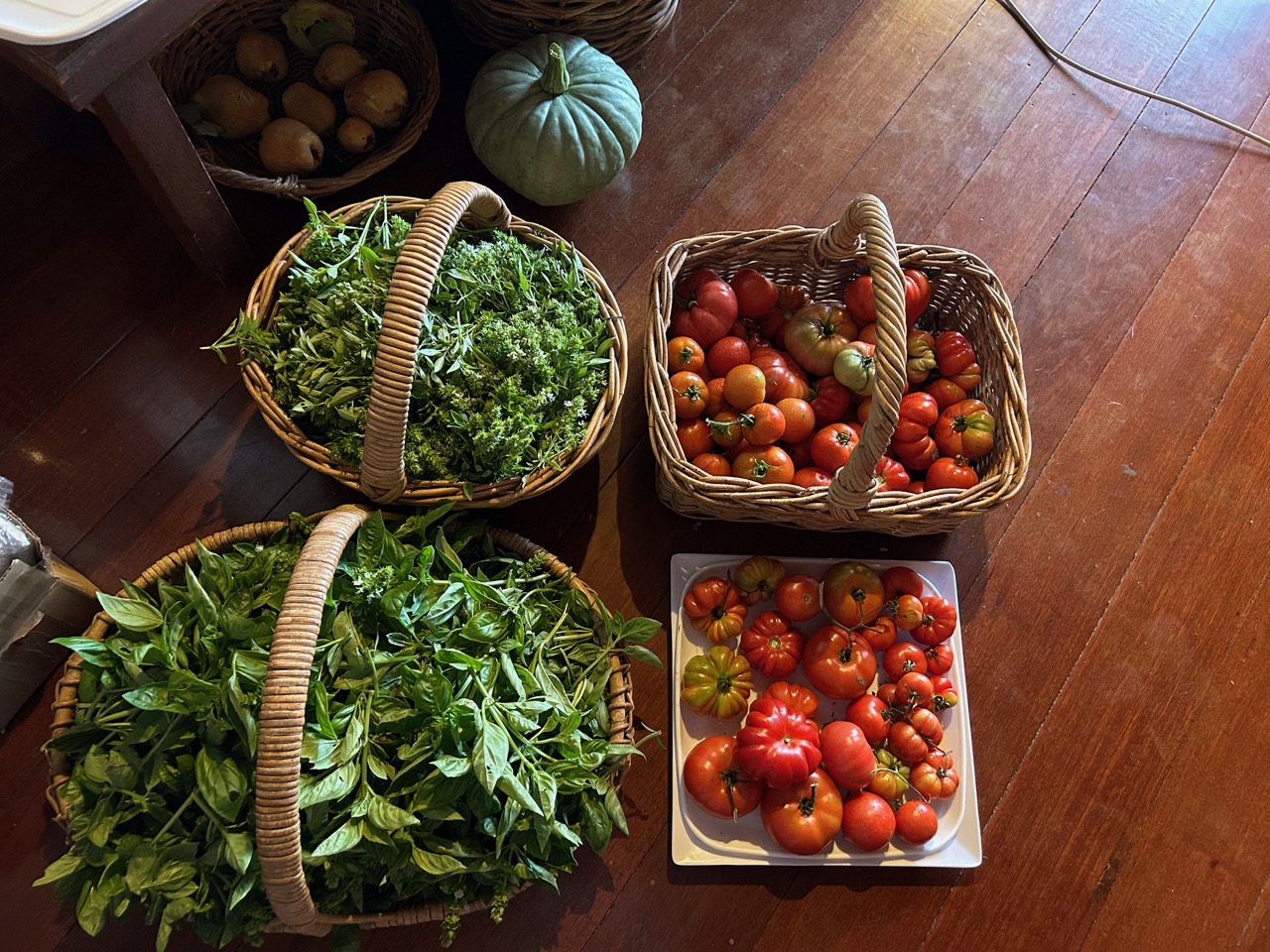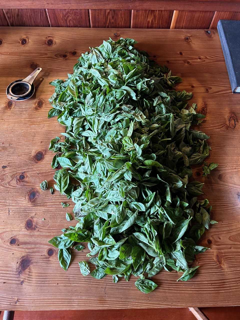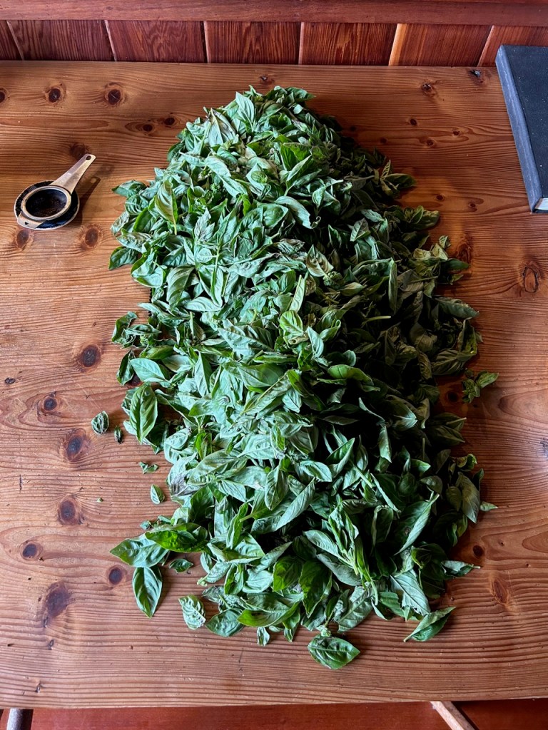 The sweet basil crop in peaking just now in the garden, so its time to make pesto.