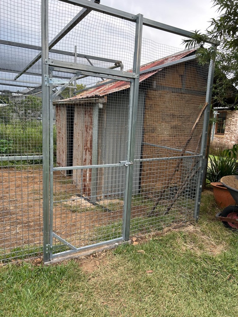 This new run is 6m x 4m. So plenty big enough to be comfortable if we are away and they are locked in. It is completely fabricated out of steel, so shouldn’t burn in the next fire.