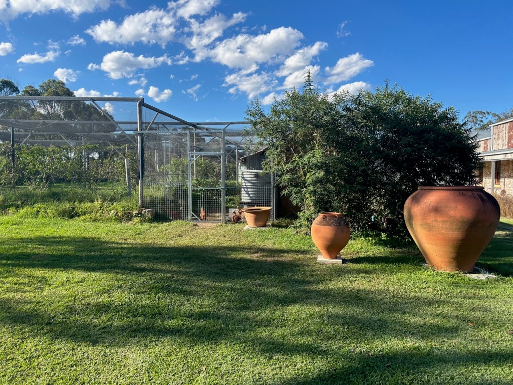 We will have to wean them off their inner city Balmain diet of sipping Chardonnay and eating smashed avocado on organic sour dough rye. From now on it’s going to be snails, worms and free range weeds and grasses and whatever else they can find for themselves. The move doesn’t seem to have bothered them one bit. They have both laid an egg a day, without interruption since they arrived. Going from a small inner city flat to 7 acres of garden, orchards and grassland bordered by bush will give them plenty of scope to live out a more ‘natural’ chooks life.